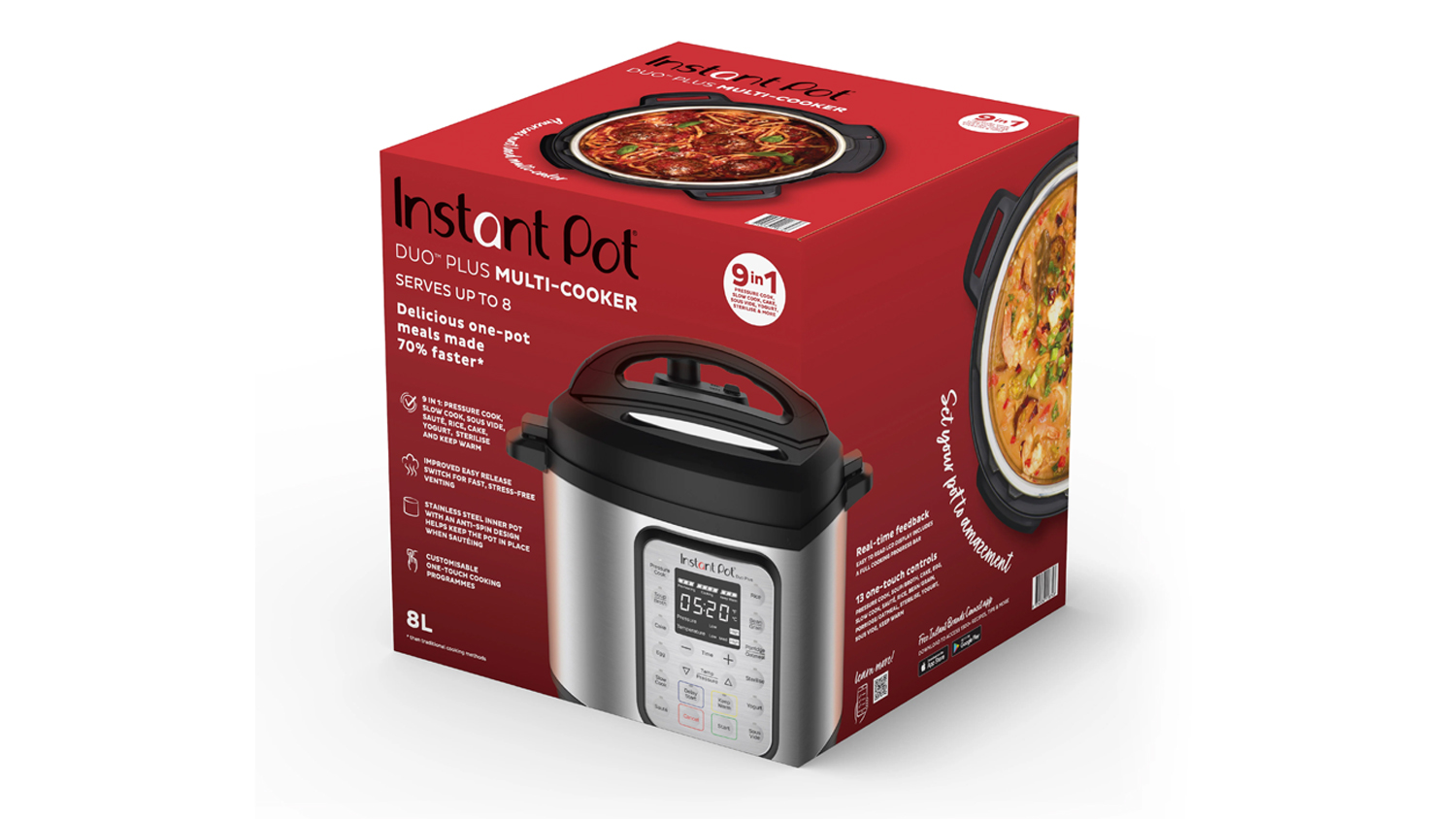 • 1 x Instant Pot Duo Plus 8L 9-in-1 Pressure and Multi Cooker - Stainless Steel