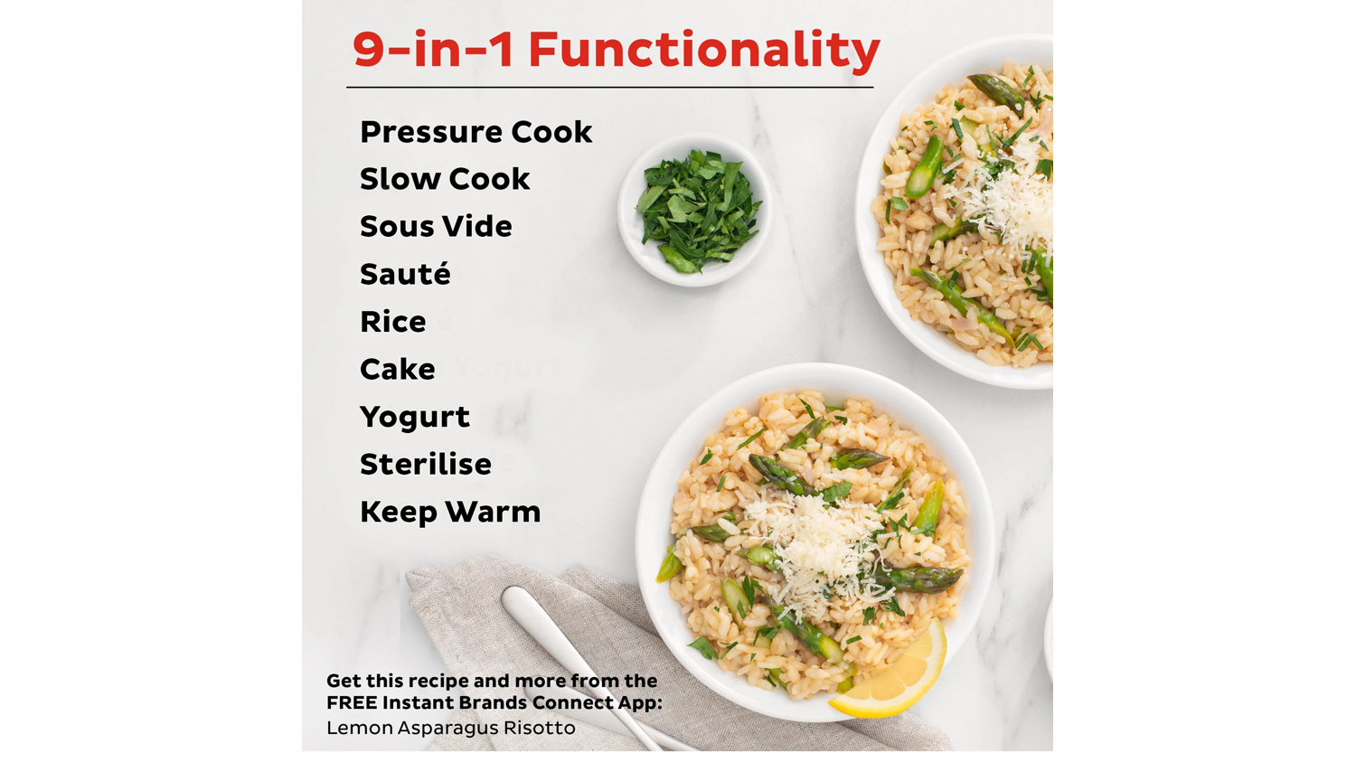 • Companion App: Download the free Instant Brands Connect app on your smartphone and discover several tasty recipes and get tips on how you can use this unit.