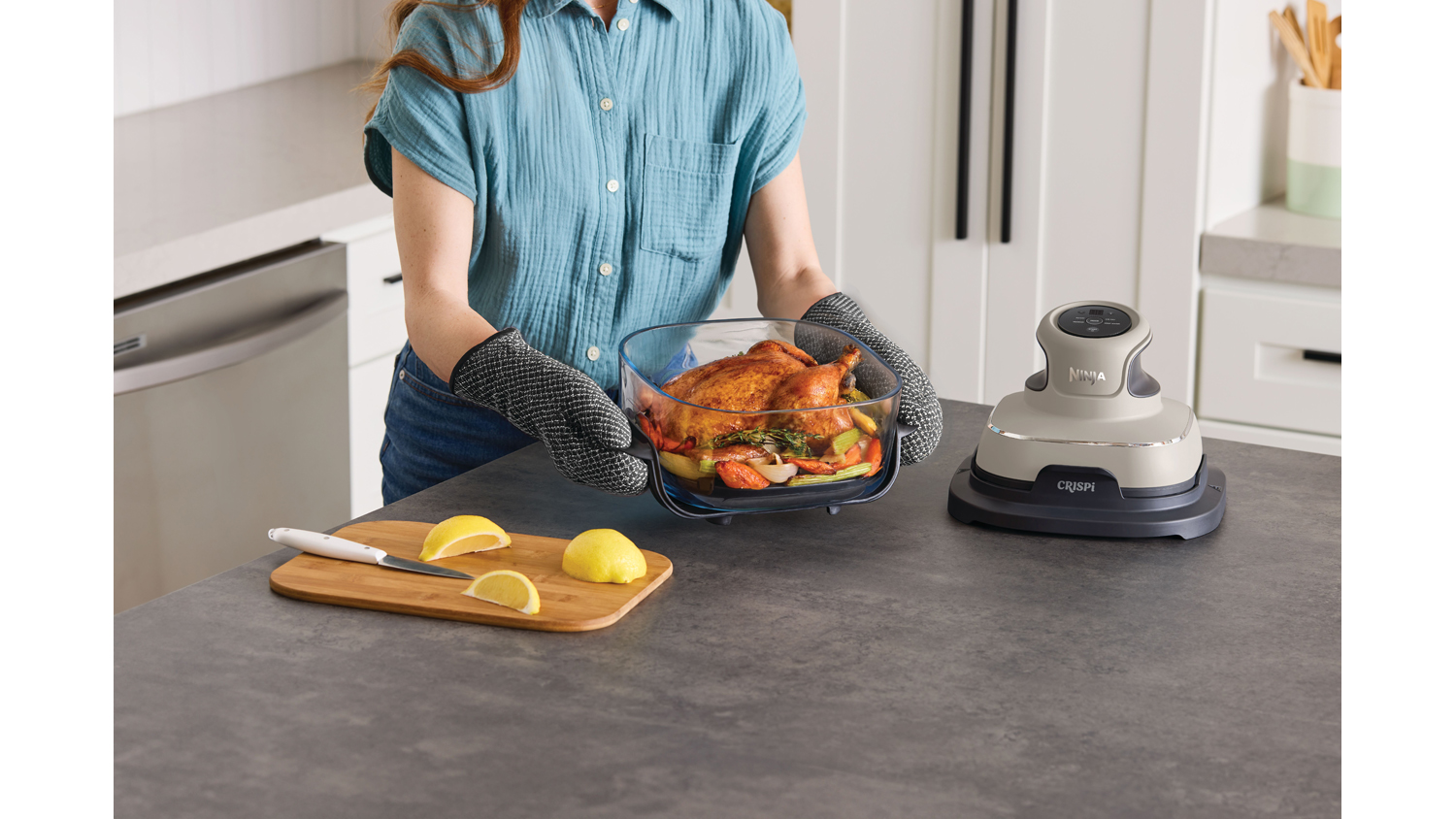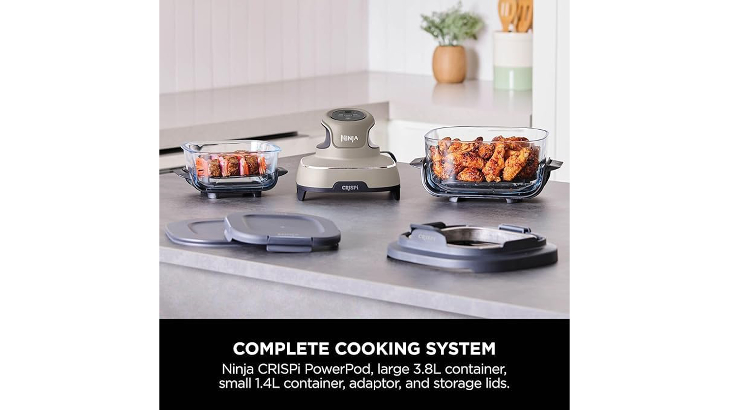 Achieve healthy, crunchy meals in no time with the Ninja Crispi 4-in-1 Glass 3.8L Air Fryer. A practical addition to your kitchen, this unit lets you enjoy powerful 1700W cooking in a sleek, space-saving build. It also boasts a multifunction design that enables you to roast, air fry, recrisp, and warm different ingredients. Plus, it comes with two containers, perfect for making small and large dishes.
