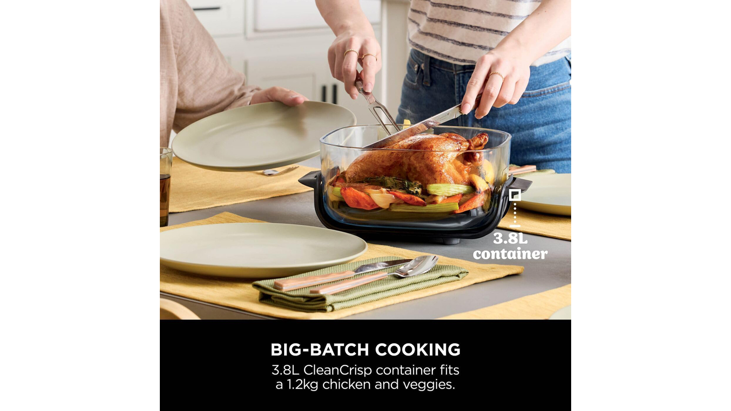 | Bowl Capacity | 1.4L Small Batch CleanCrisp Container & 3.8L Large Batch CleanCrisp Container |