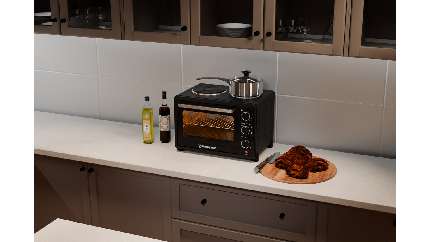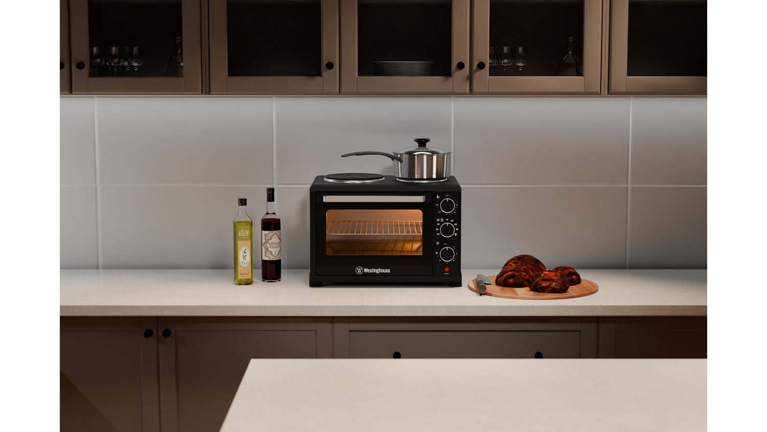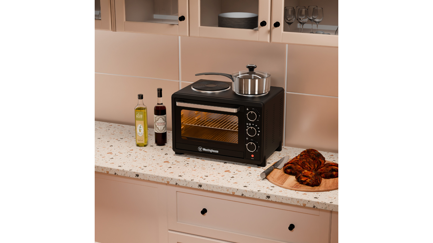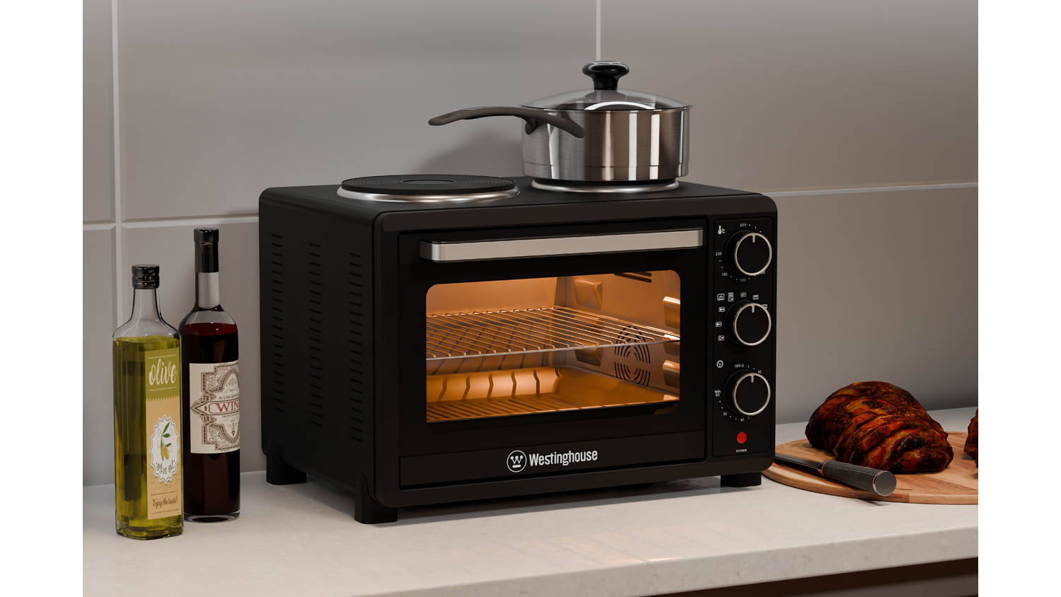 Westinghouse 30L Convection Air Oven with Hotplates - Black (WHOV04K)