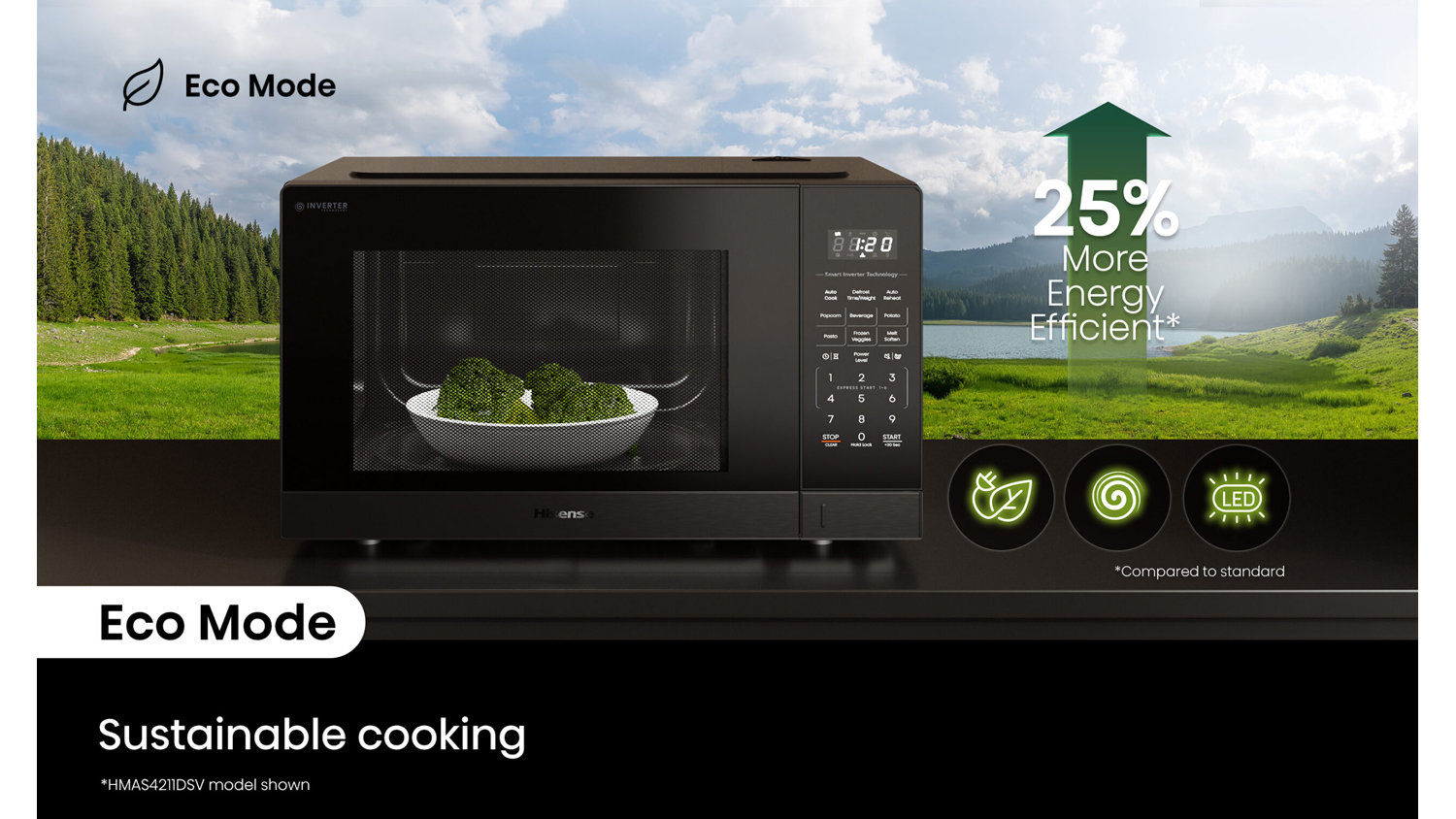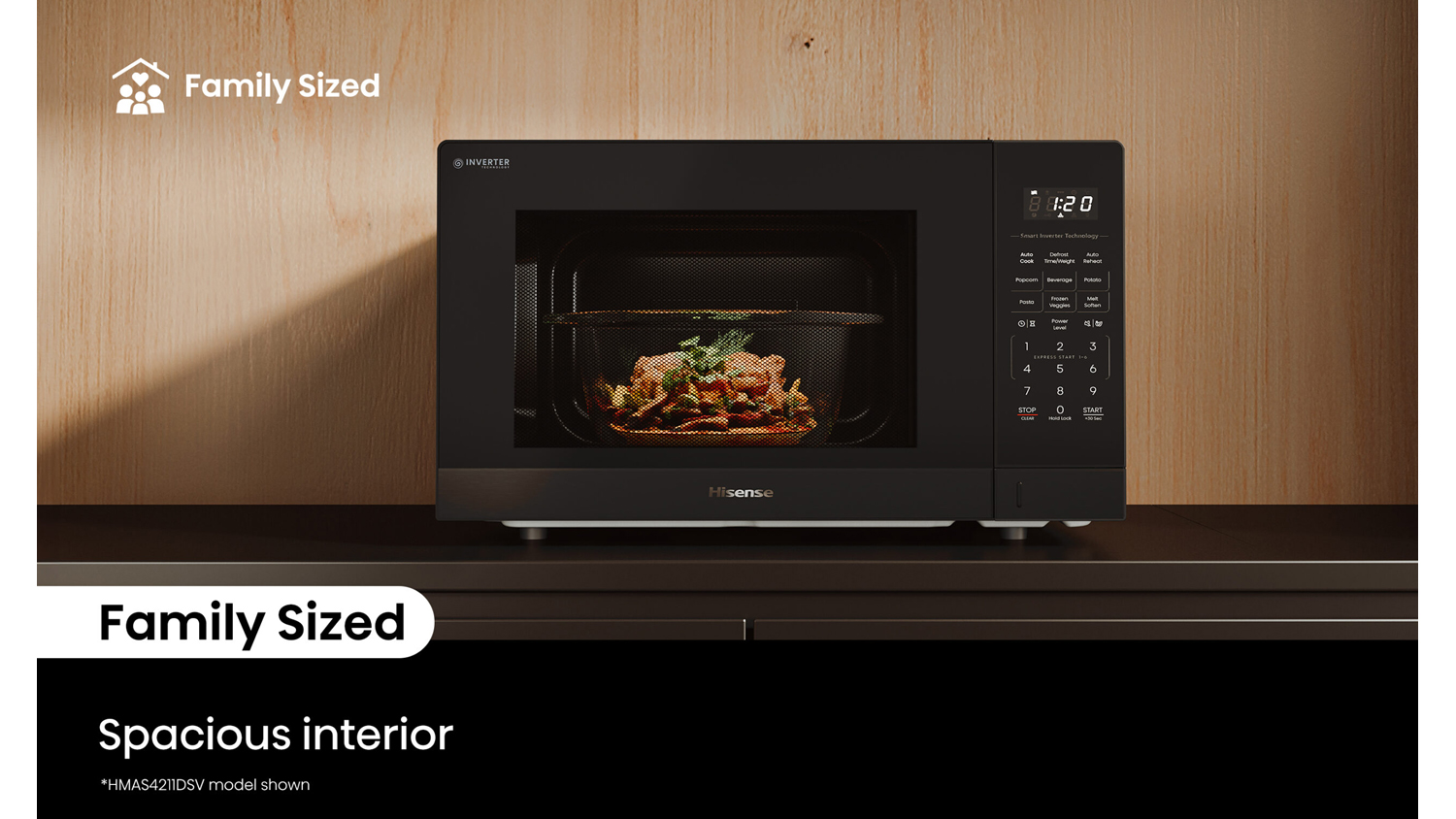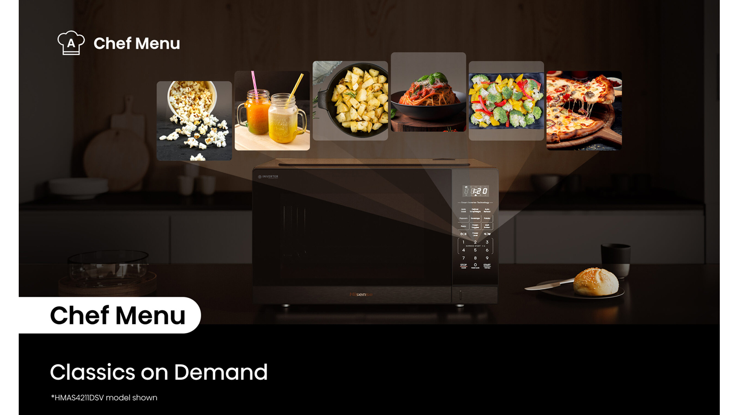 Bring efficiency and versatility to your modern kitchen using the Hisense 42L Inverter 1100W Microwave. A practical addition to every household, this appliance boasts advanced Inverter Technology that lets you quickly heat meals with superb precision. It also offers 10 power levels and six presets via Chef Menu, so you can cook your favourite dishes to perfection.