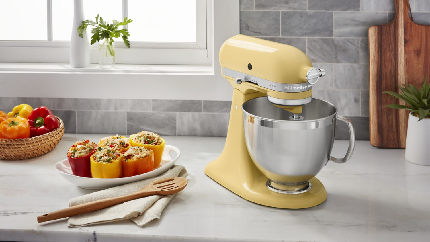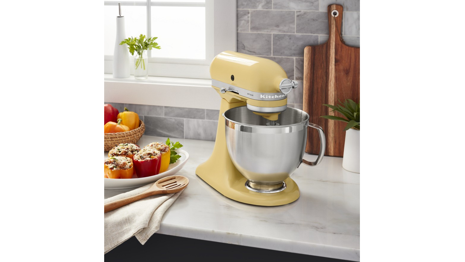 **KitchenAid KSM195 Artisan Stand Mixer in Majestic Yellow only. Other colour variations mentioned are sold separately.