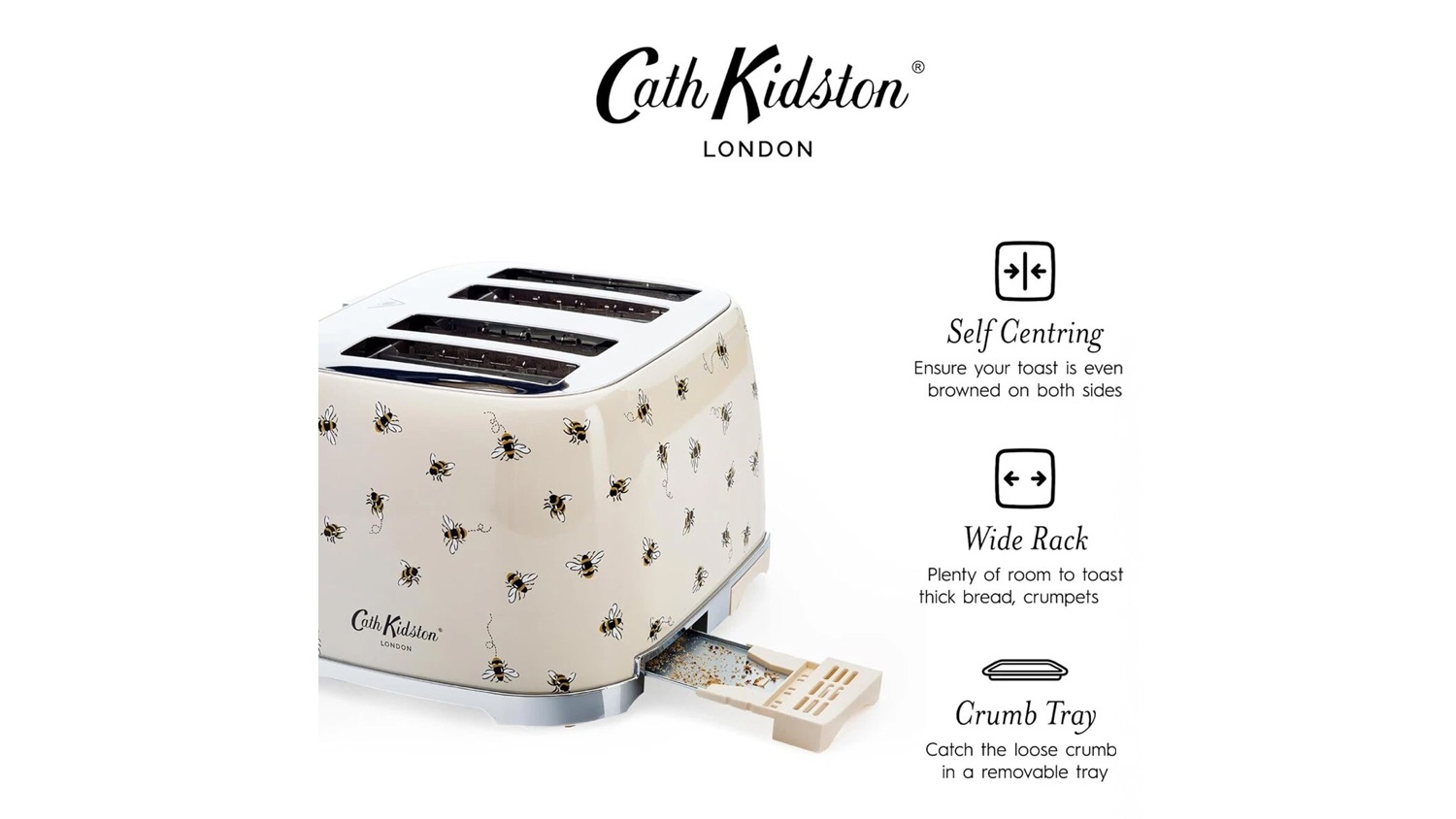 Cath Kidston 4 Slice Toaster - Bees (CKT4BEE)
