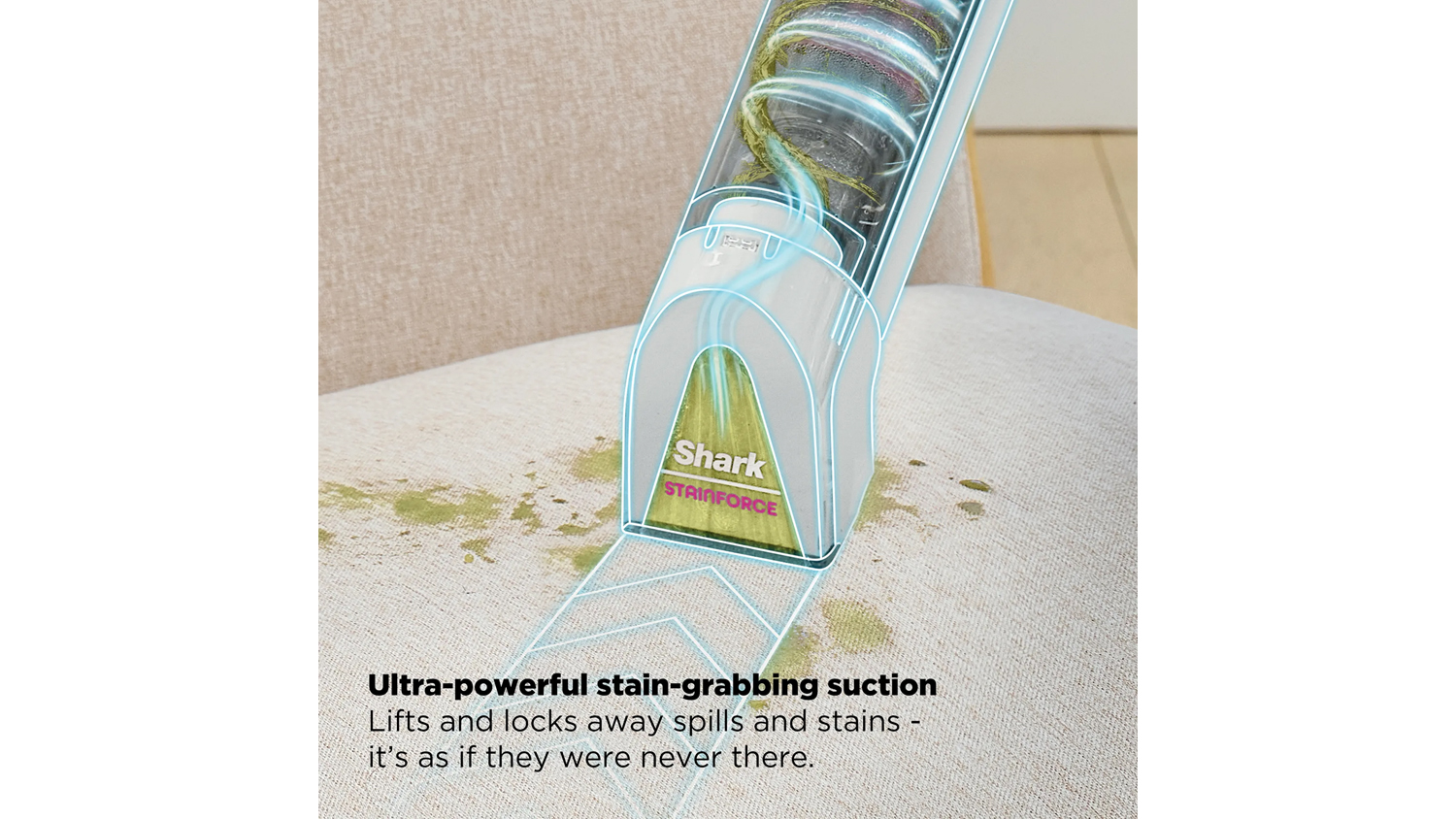 Restore the pristine look of your furnishings using the Shark StainForce Wet & Dry Cordless Stain & Spot Cleaner. A practical addition to your cleaning arsenal, this appliance delivers ultra-strong suction power to effectively tackle daily spills, tough spots, and embedded stains. It also ensures convenient operations, featuring a wireless design and a self-cleaning function.