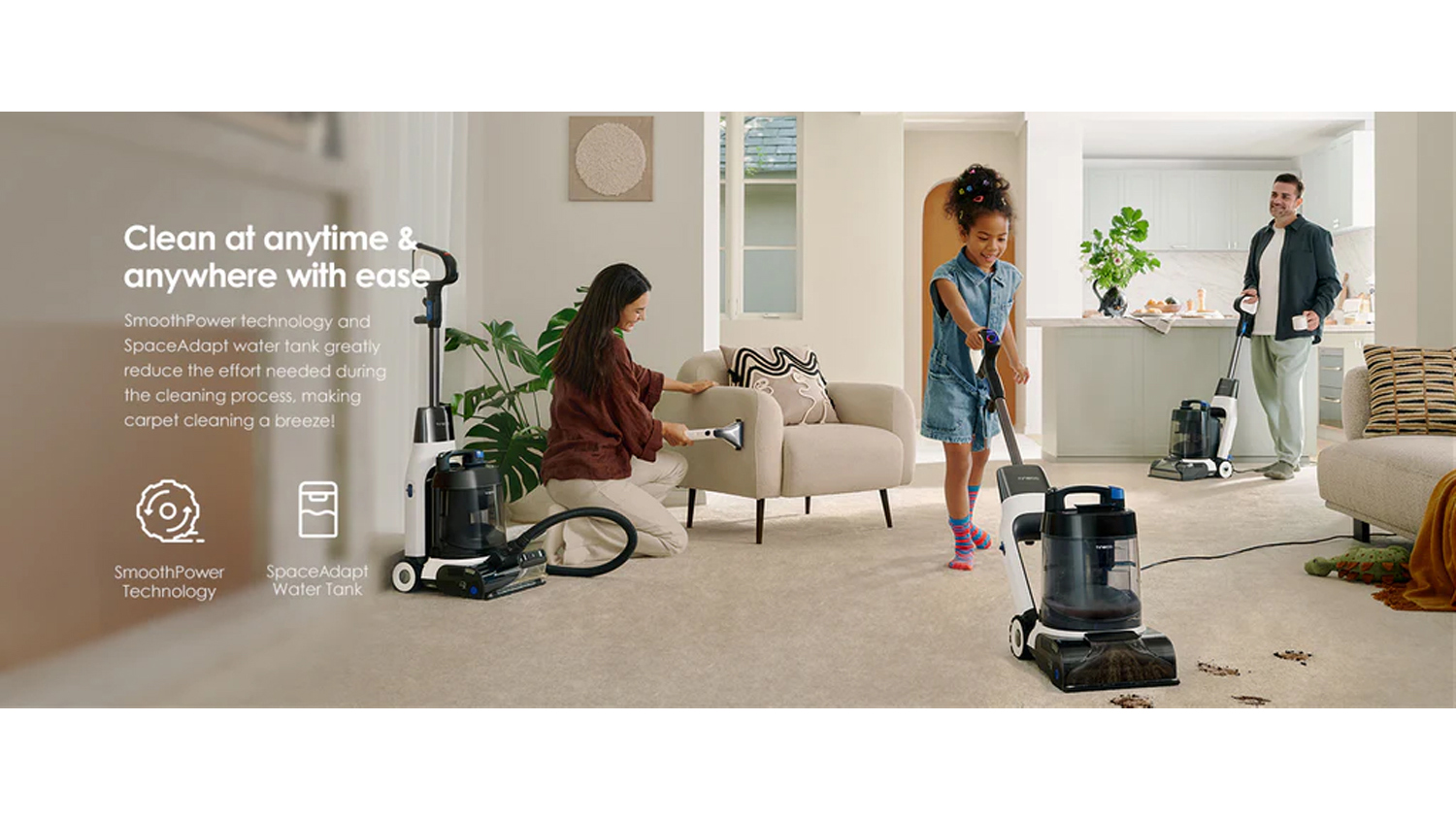Refresh your home with the help of the Tineco CARPET ONE Cruiser Carpet & Upholstery Cleaner. From muddy footprints to accidental spills, this unit delivers powerful 130W suction to help you power through various tough messes. It also employs High-Temp PowerDry, so you’re ready to use your upholstery in no time. Plus, it features SmoothPower Tech for seamless manoeuvring.