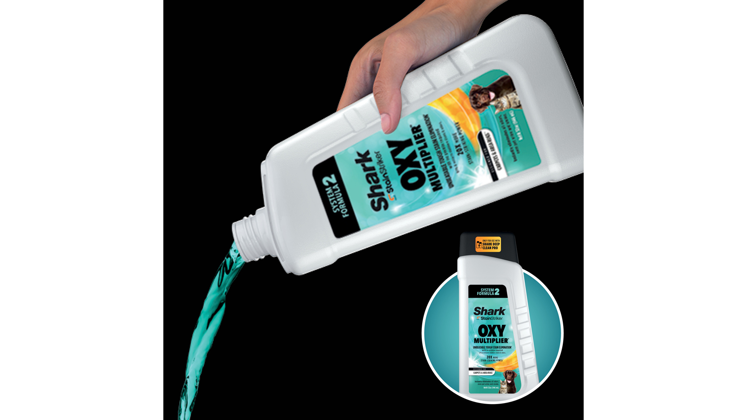 *vs. Shark Deep Clean Pro Formula. Must be combined with Shark Oxy Multiplier™, sold separately.