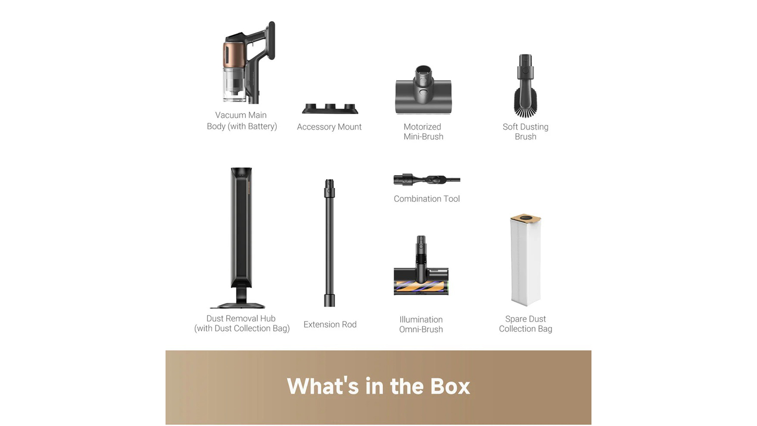 | Attachments - List | Motorized Mini-Brush, Illumination Omni-Brush, Illuminated Soft Roller Brush, Combination Tool, Flexible Adapter, Extension Rod, Soft Dusting Brush |