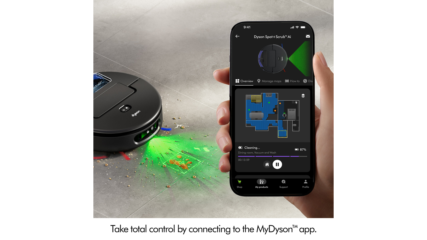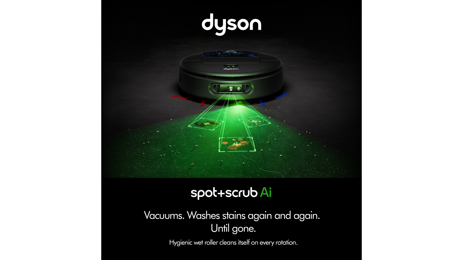 Discover the thorough cleaning performance offered by the Dyson Spot+Scrub Ai Robotic Vacuum & Mop. Perfect for modern living, this appliance effectively tackles a range of stains, dirt, and messes on your floors. It also ensures hygienic mopping with a wet roller that continuously cleans itself as it operates. Plus, it comes with a Multifunctional Docking Station for hassle-free maintenance.