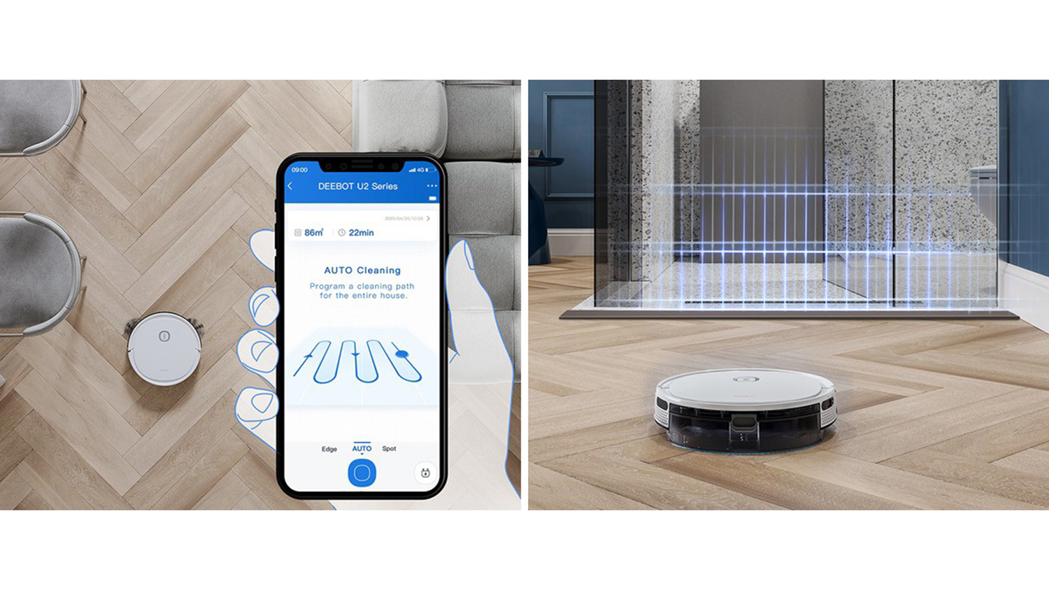 Upgrade your daily cleaning routine using the Ecovacs Deebot U2 Robotic Vacuum & Mop with Charging Station. A smart investment for your home, this cleaning device features OZMO™ Mopping Technology, Hard Floor Mode, and Max + Mode that are ready to keep your floors spotlessly clean. It also highlights Stair Safety and Obstacle Detection Technologies for enhanced navigation. Plus, this unit supports the Ecovacs App and various smart home devices, offering convenient hands-free controls.