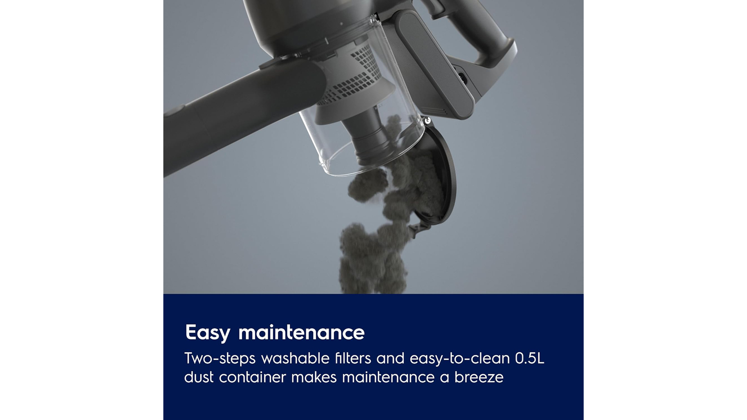 Discover the ultimate convenience and versatility offered by the Electrolux UltimateHome 300 Handstick Vacuum Cleaner. A practical home maintenance companion, this unit features a cutting-edge Cyclonic System to ensure superb suction performance and up to 99% dust pickup. It also boasts a compact and lightweight design, so you can easily manoeuvre it to different areas of your home. Plus, this machine equips two-step washable filters and an easy-to-clean 0.5L dust container.