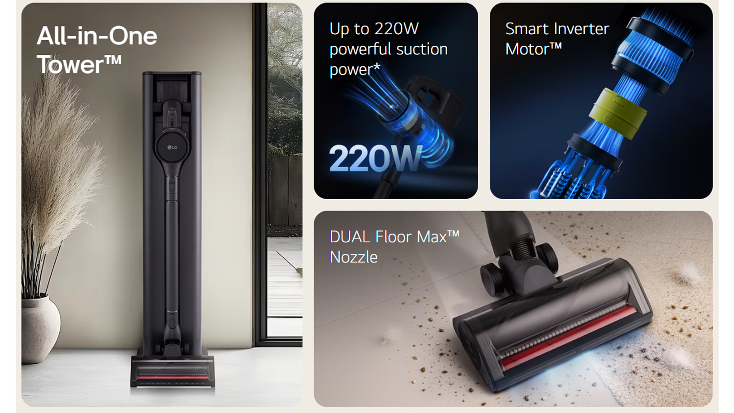 Cleaning your floors has never been this simple with this LG CordZero A9L Titan Handstick Vacuum Cleaner with Auto Emptying Station! This smart appliance delivers up to 220W suction to lift dirt, dust, and pet hair effortlessly. Its friction-free Smart Inverter Motor™ ensures durable performance, while the Dual Floor Max Nozzle with LED lights reveals hidden messes. With an auto-emptying system, unit maintenance becomes virtually hands-free.