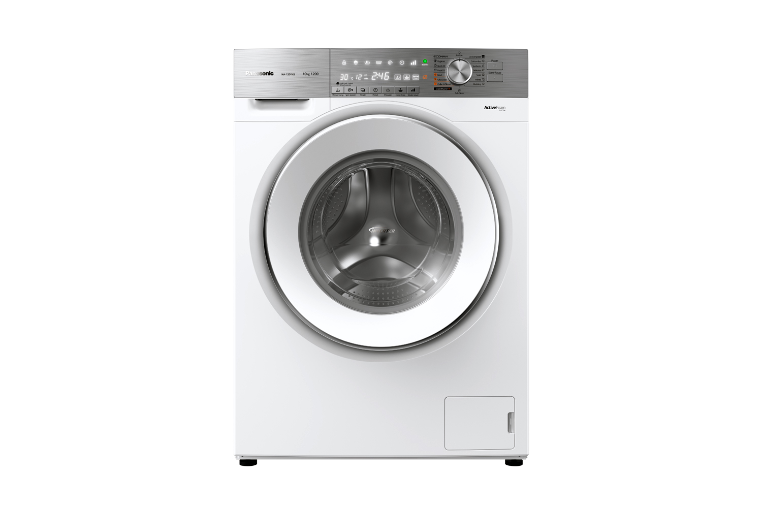 Transform your laundry with Panasonic! This 10kg front loader features ActiveFoam technology and Active Speed Wash to greatly reduce your laundry time, and StainMaster+ to easily remove the trickiest of stains. All encompassed in a stylish white and silver finish.