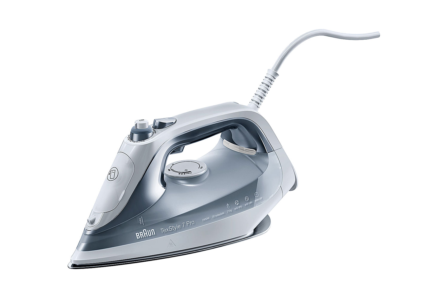 The new TexStyle 7 Pro series features the world’s first 3D Eloxal BackGlide soleplate. No more getting stuck on pockets, buttons and zippers – even backwards. The unique Eloxal coating on the soleplate provides extraordinary glideability to accelerate the ironing process.