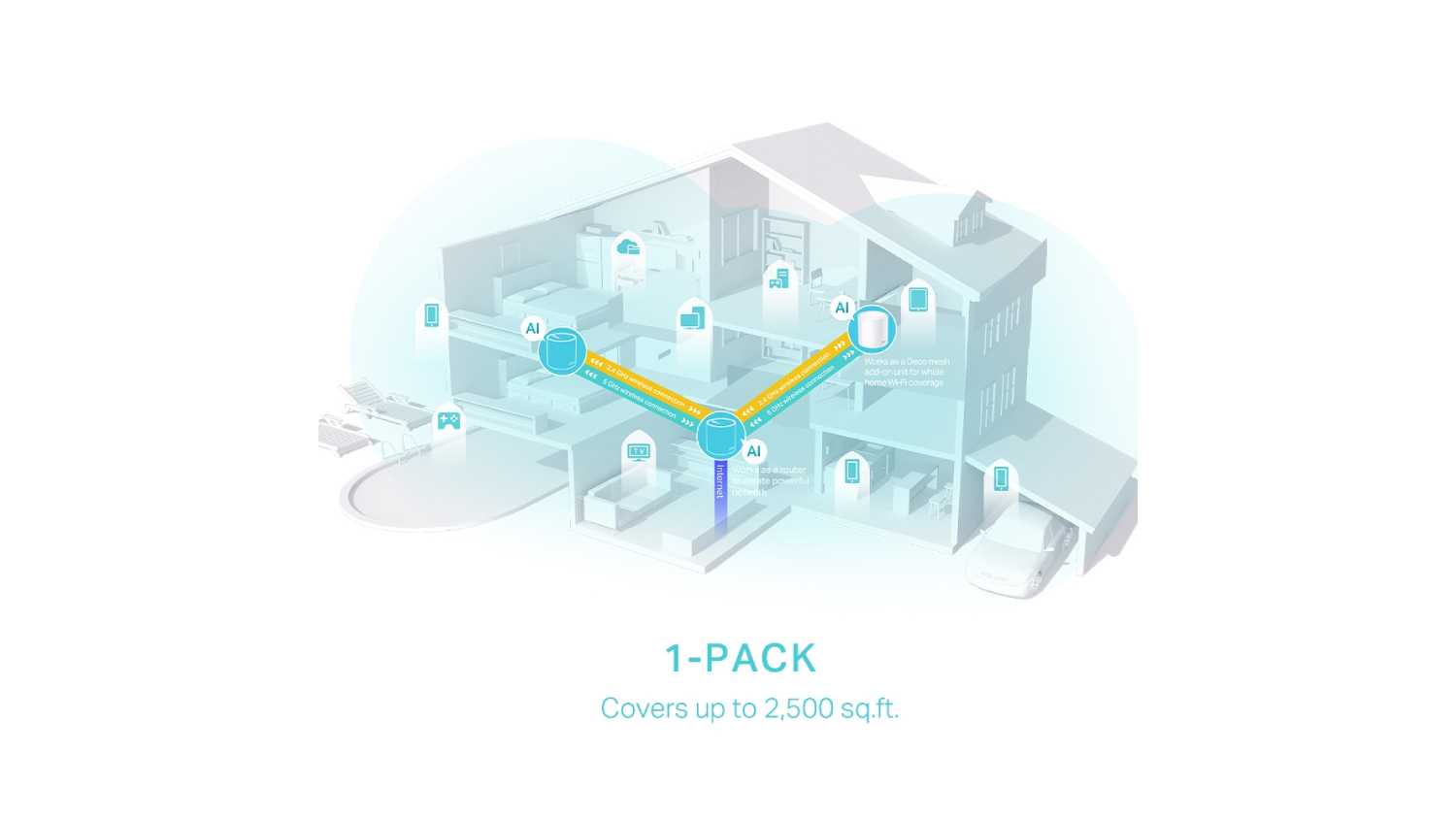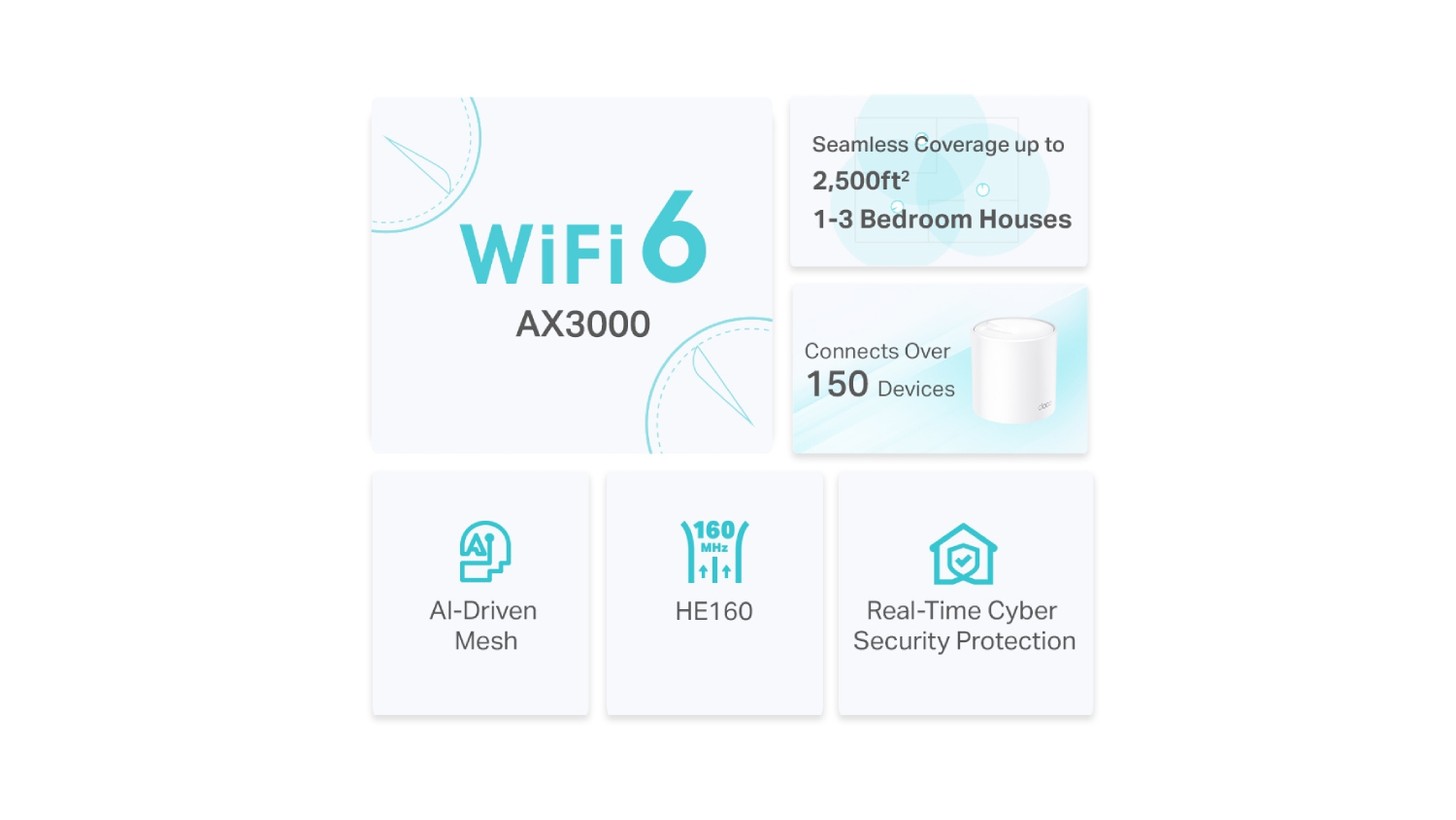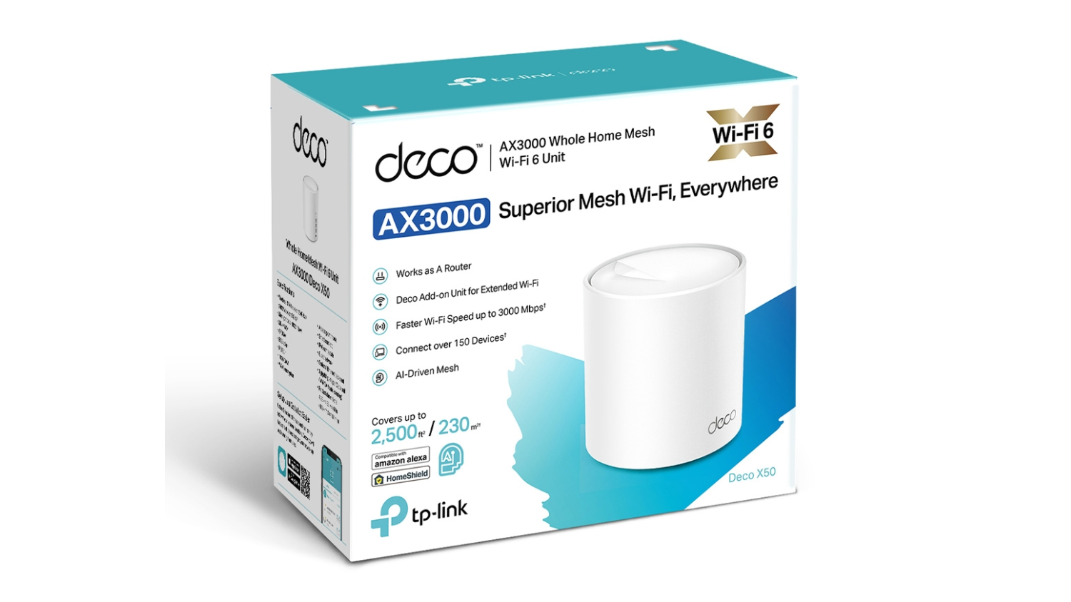 Boost your home internet connection with the TP-Link Deco X50 AX3000 Dual-Band Mesh Wi-Fi 6 Router. Delivering up to 3.0 Gbps speeds, this unit reliably handles your various Wi-Fi needs from streaming to online gaming. It also offers a wide 200 m² coverage, reaching up to three bedrooms in your home. Moreover, Deco X50 can handle over 150 devices, ensuring everyone in the family stays connected.