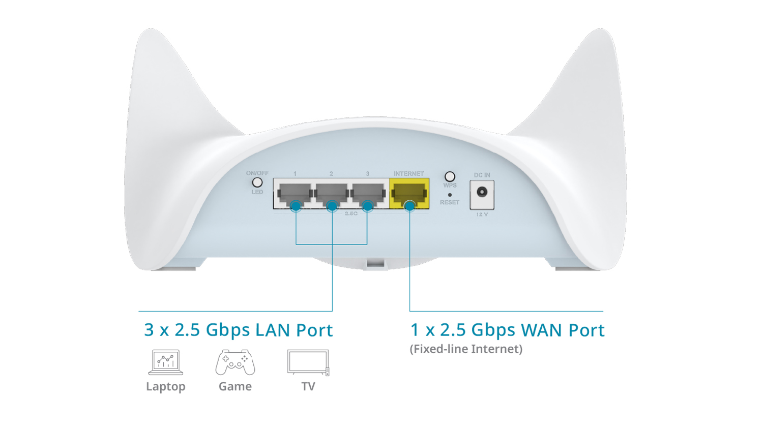 | Router Ports | 1 x 2.5Gb WAN port, 3 x Gigabit LAN ports |