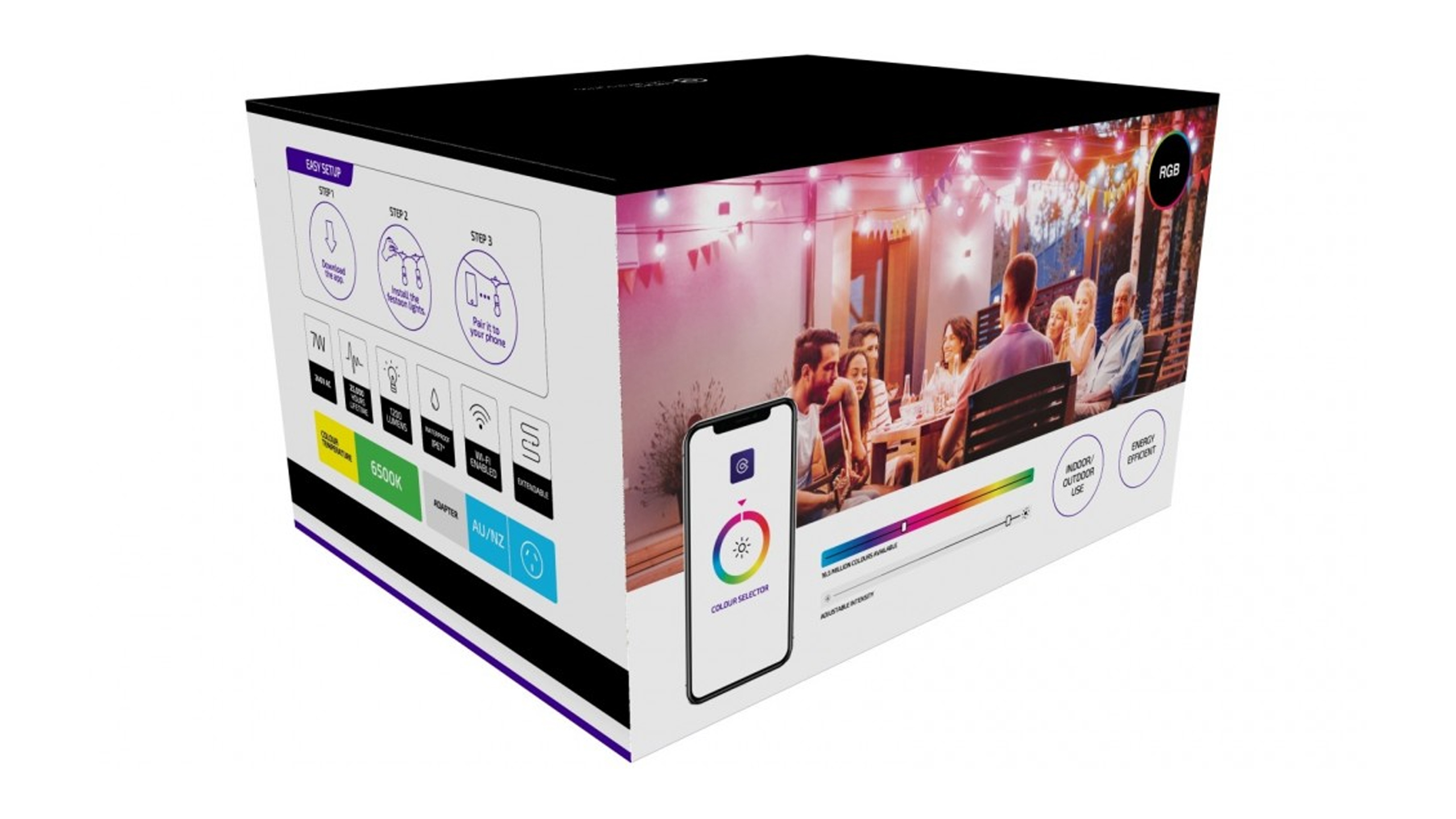 Achieve the perfect atmosphere with Connect Smart RGB LED Festoon Light. The vivid colours and soft whites will surely set the right ambience that you want for your outdoor living space. Connect Smart RGB LED Festoon Light can help you instantly make your area fascinating and captivating. Along with Connect SmartHome App, the smart festoon lights can help you create a well-suited mood for your environment.