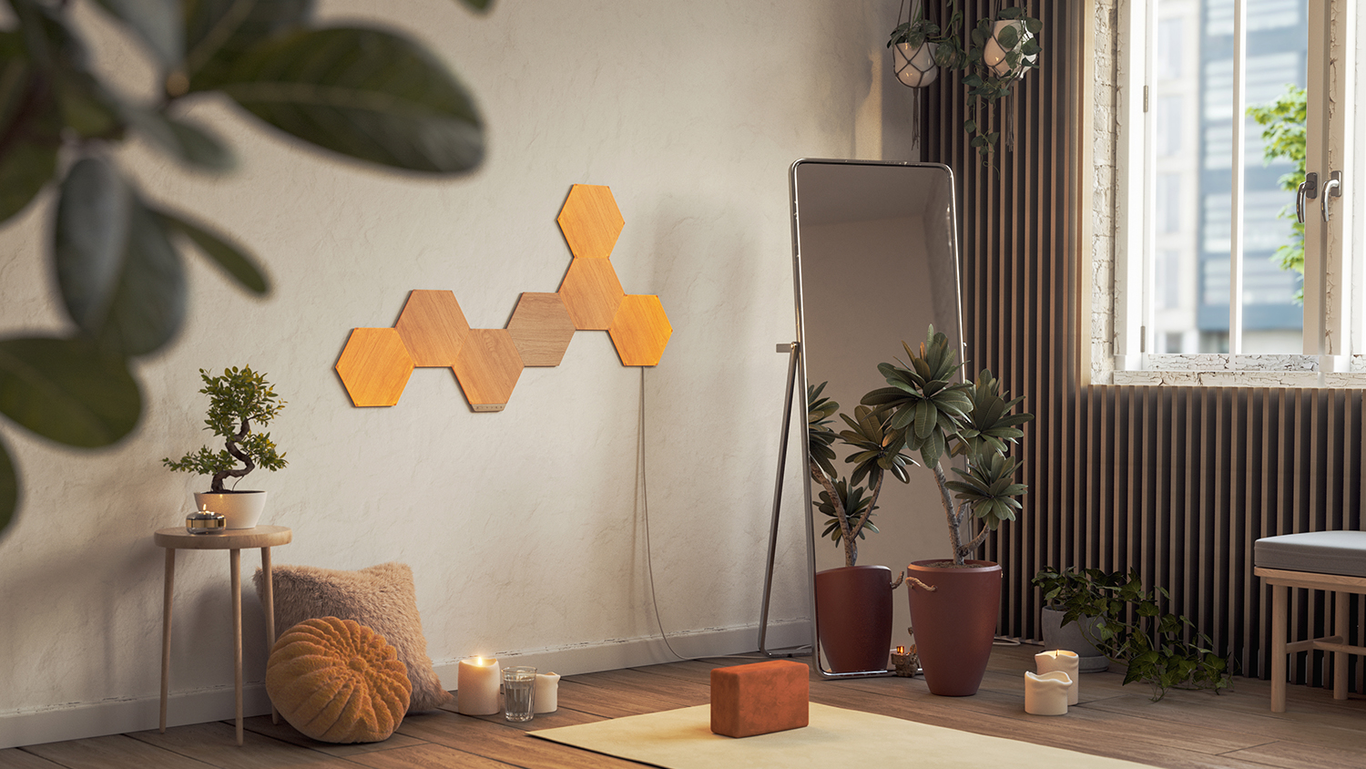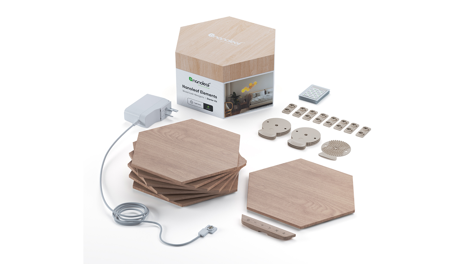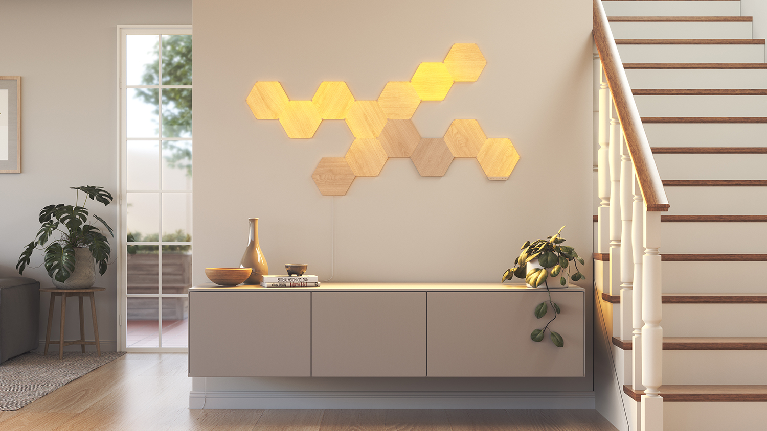 Brighten up your room with a soft, natural glow offered by the Nanoleaf Elements Wood Look Starter Kit. A smart and elegant decorative option, these light panels boast an organic hexagon design that produces beautiful warm and cool whites. It also comes with adhesive strips, so you can easily install them on your wall without the need for wiring or drilling.