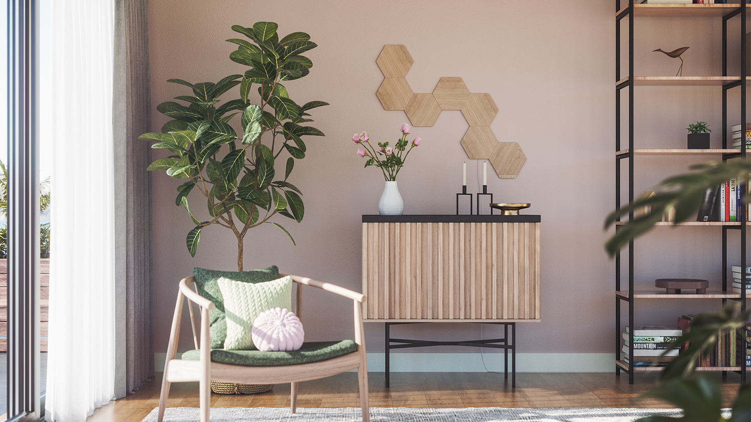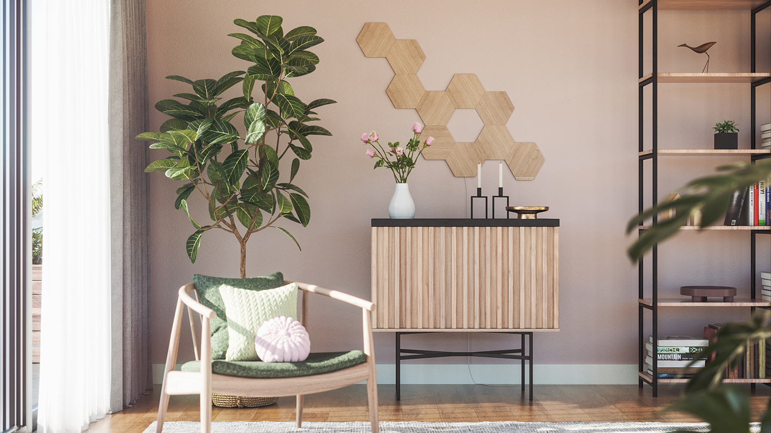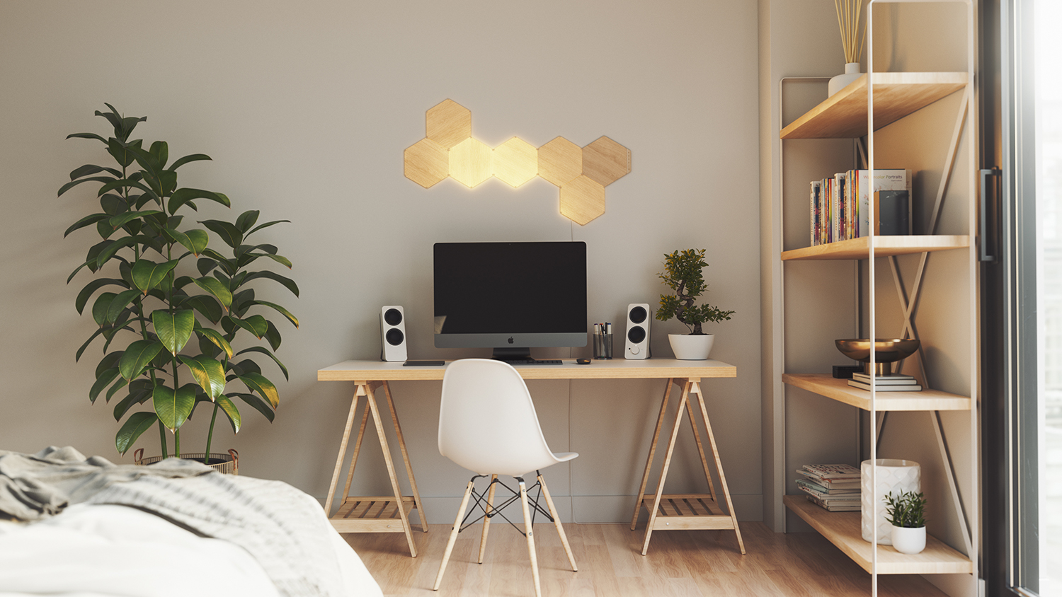 Brighten up your room with a soft, natural glow offered by the Nanoleaf Elements Wood Look Starter Kit. A smart and elegant decorative option, these light panels boast an organic hexagon design that produces beautiful warm and cool whites. It also comes with adhesive strips, so you can easily install them on your wall without the need for wiring or drilling.
