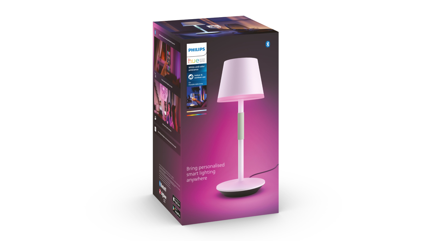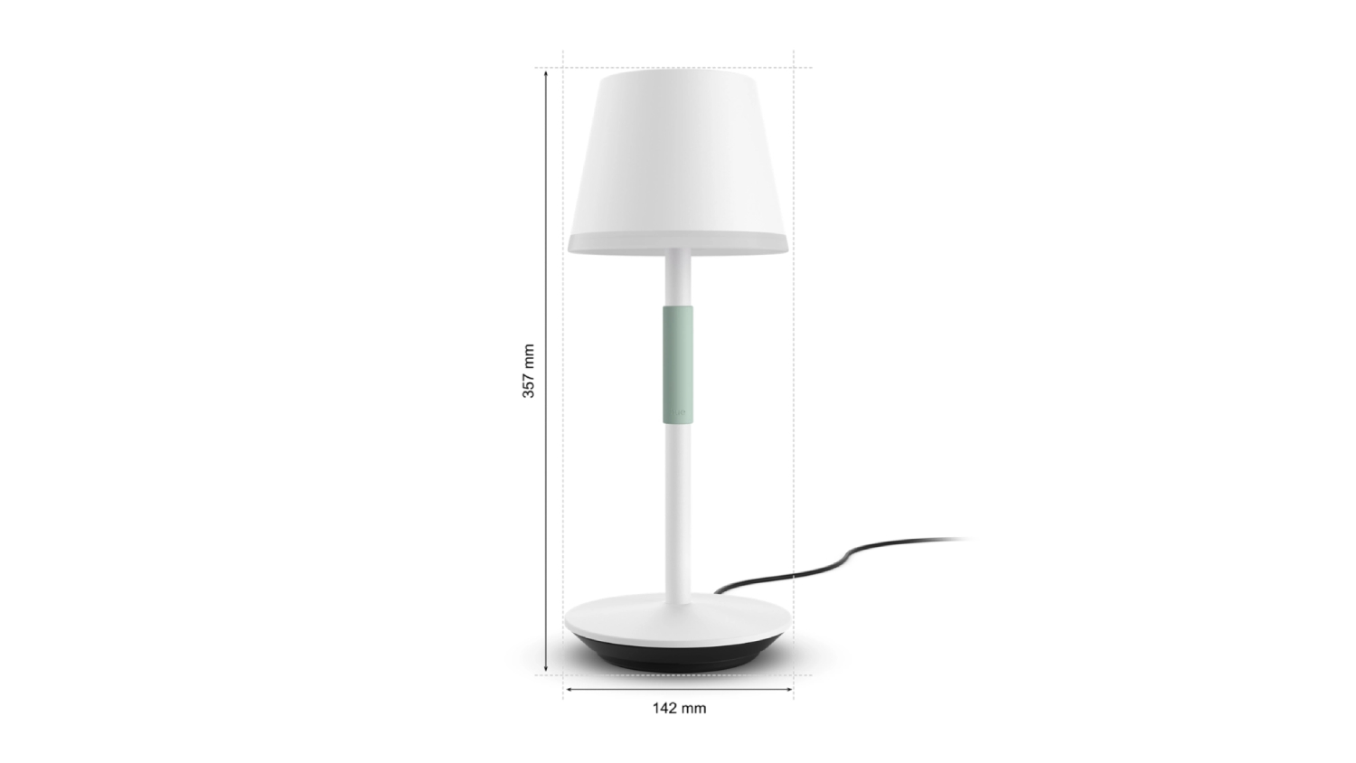 Illuminate your space and set the perfect indoor ambience with this Philips Hue 6W Smart Indoor Belle Portable Table Lamp. This beautiful lamp supports 16 million colours, 370 lumens, instant wireless dimming, and up to 25,000 hours of lifespan. It also highlights a handy silicone grip and an IP20 rating, so you can easily position it where you need it the most. Plus, this table lamp is compatible with Bluetooth, the Philips Hue App, Hue Bridge, and Hue Switch.
