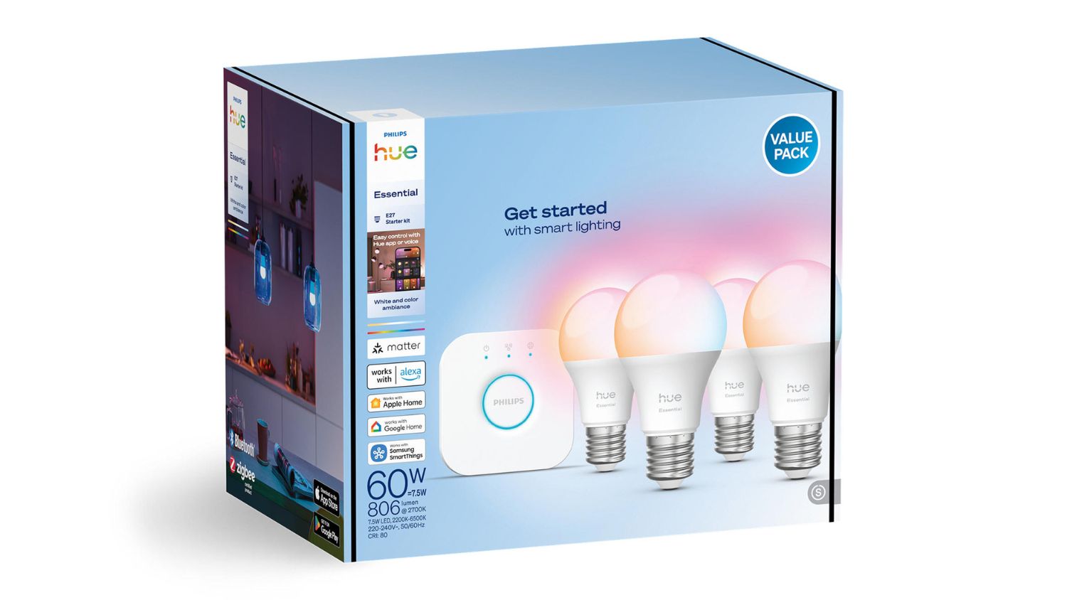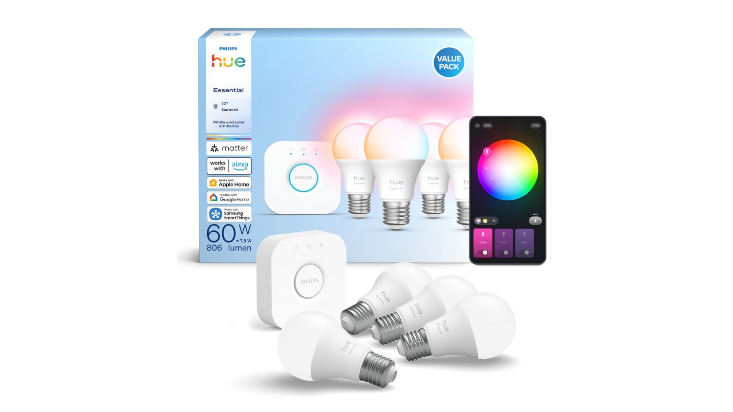 Philips Hue Essential E27 A60 7.5W Smart Light Bulb Starter Kit - 4 Pack (White & Colour Ambiance)