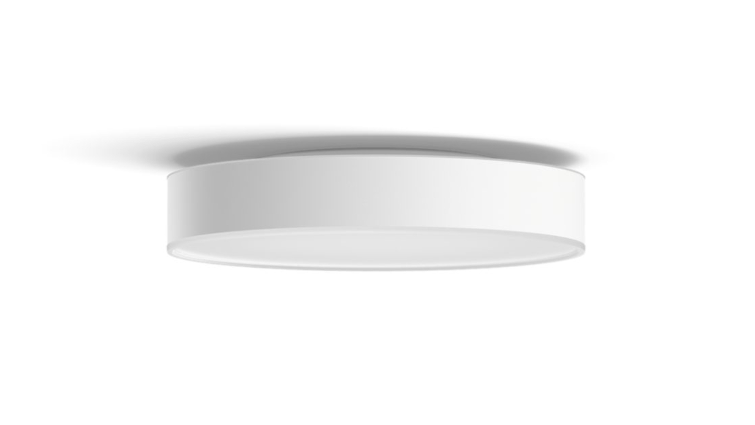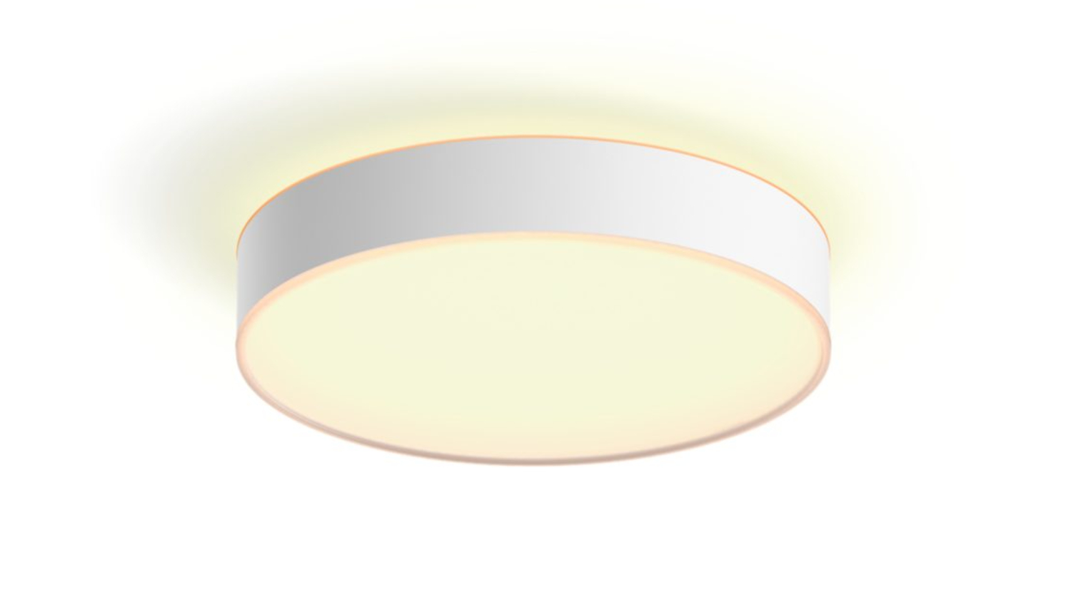 Illuminate large areas of your home such as the bedroom, living room, and more with this Philips Hue White Ambiance Enrave Ceiling Light! This stunning light fixture boasts 50,000 shades of warm-to-cool white light options, 2,450 lumens (at 4000k), a lifetime of up to 25,000 hours, an IP20 rating, and Bluetooth connectivity. You can also connect it with the Philips Hue Bridge device (sold separately), so you can control your lights from your smartphone or tablet. Additionally, this ceiling light includes a dimmer switch for ease of use.
