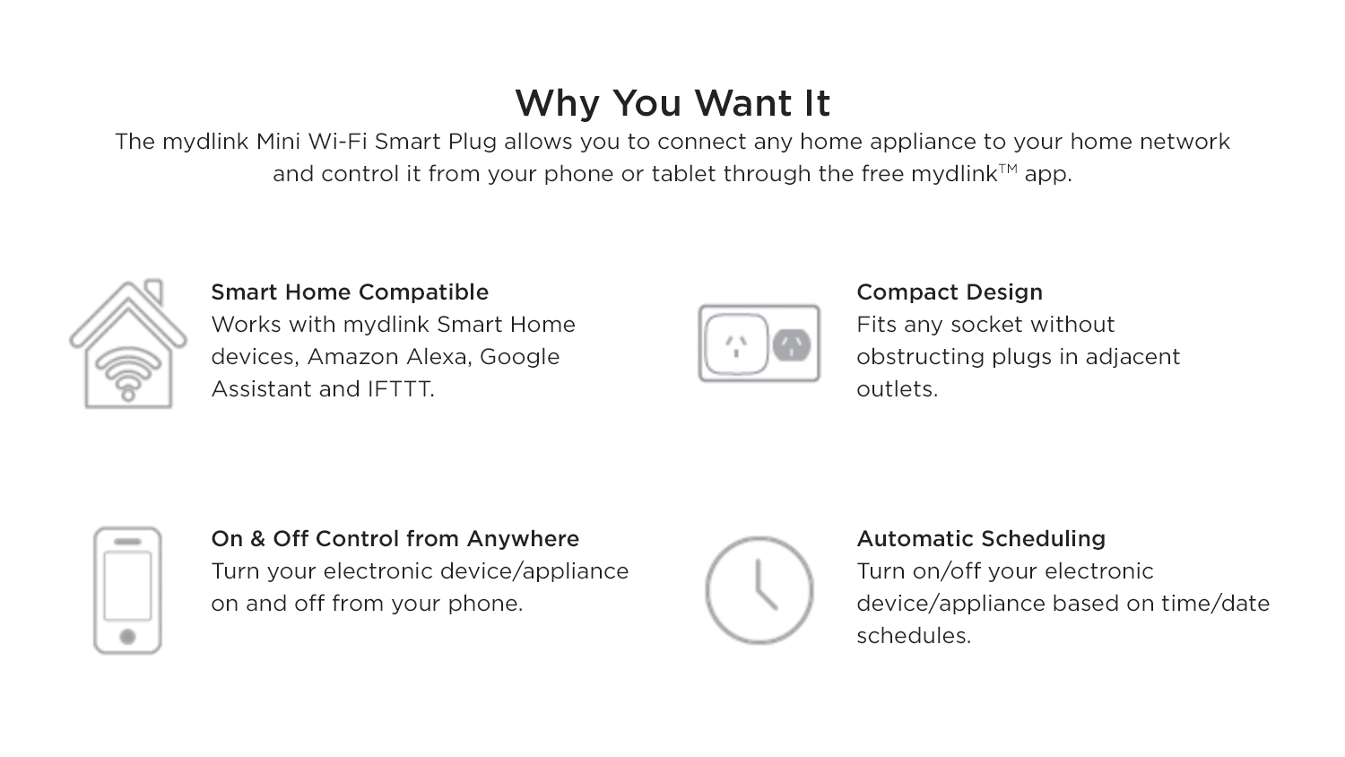 - Remote Access: With a download of Mydlink app on your smartphone, this Mini Wi-Fi Smart Plug allows you to control the smart appliances around your home with just a single tap.