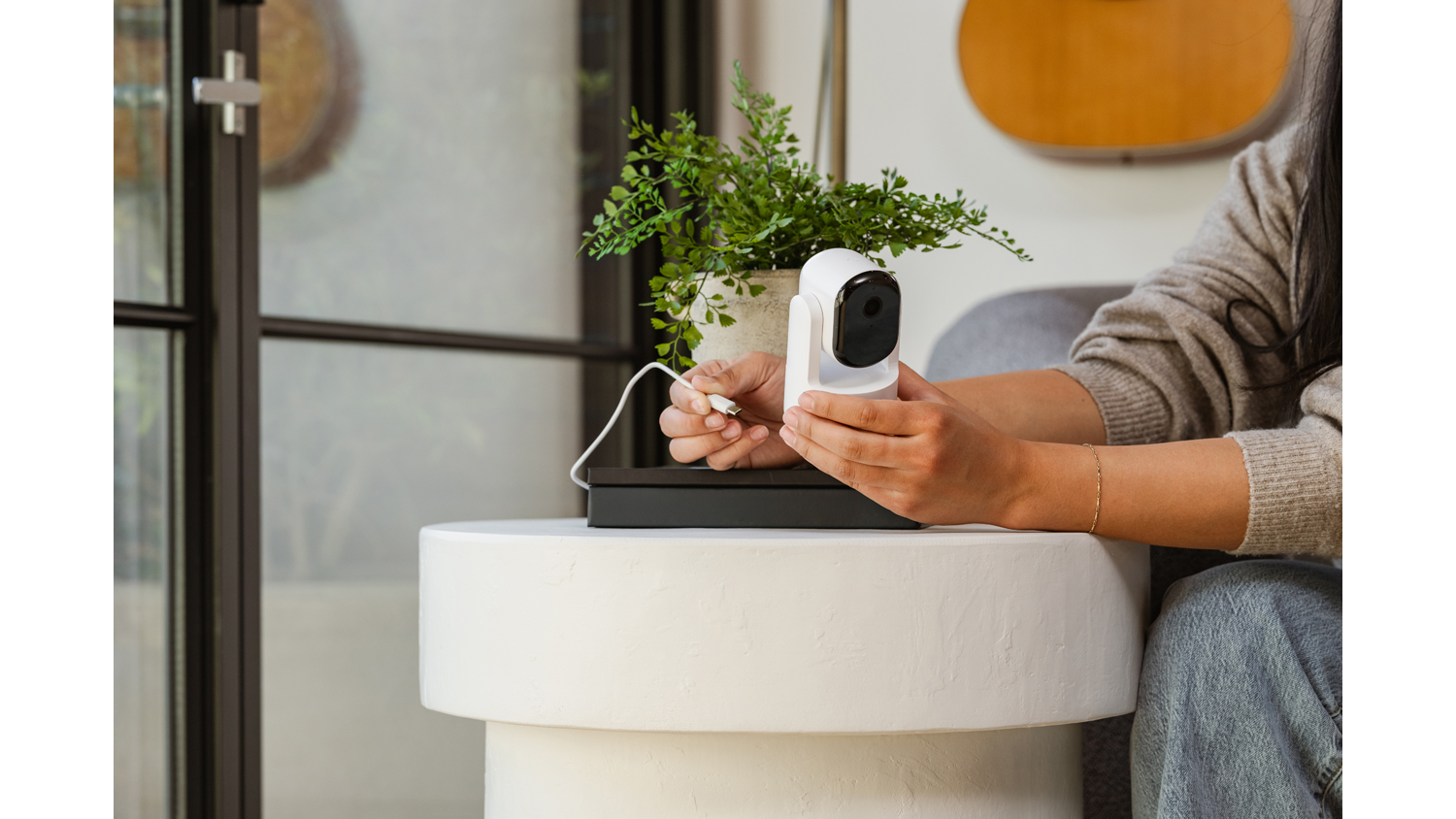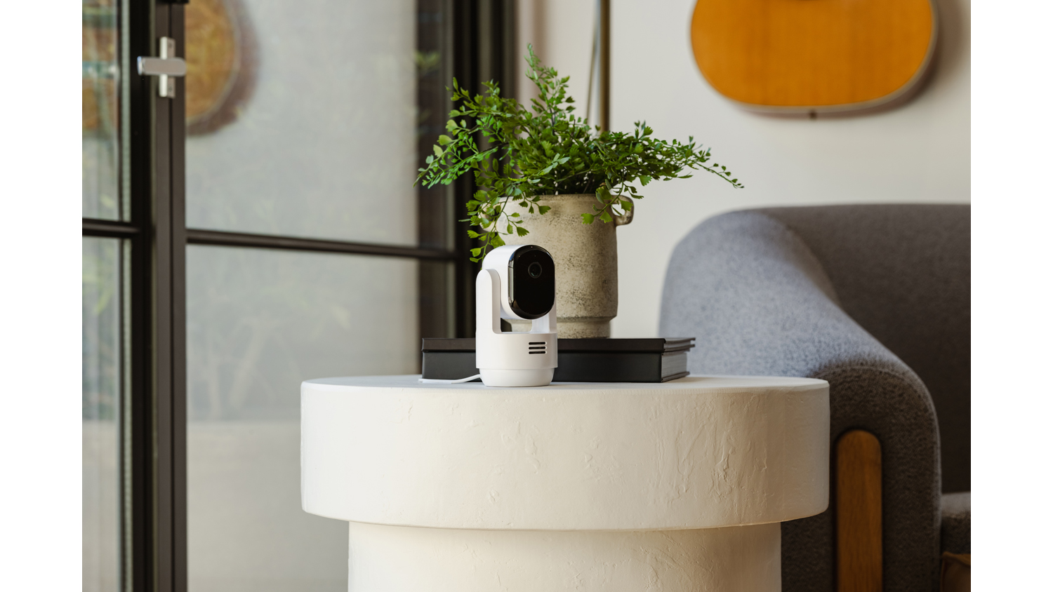 Oversee your living space using the Arlo Essential 2K Indoor Wired Pan & Tilt Security Camera. Bringing peace of mind to your home, this unit captures every moment at home in crisp 2K resolution. It also offers 360° pan and 180° tilt viewing to help you cover more corners of the room. Plus, it packs more innovative features like Night Vision, Motion Detection, and Dual-Band Wi-Fi.