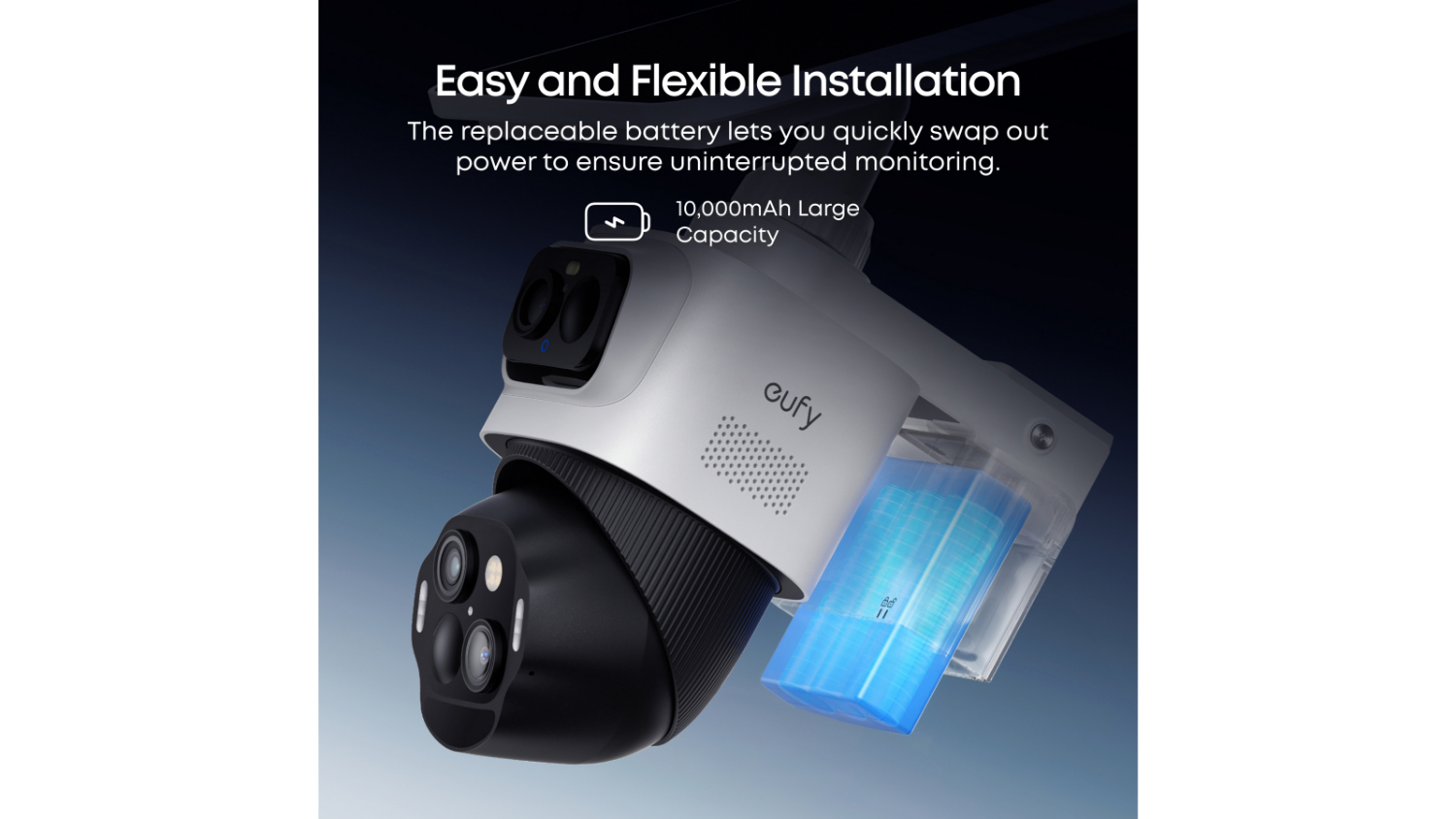 Upgrade your home defense with the Eufy Cam S4 4K Outdoor Wireless Smart Security Camera. A perfect solution for your surveillance needs, this camera perfectly combines a revolutionary Pan-Tilt-Zoom Camera and a 4K bullet camera to ensure every detail is captured and no corner is left unseen. It also employs SolarPlus 2.0 technology, BionicMind™ AI Recognition, All Night Clarity, and more to provide reliable, round-the-clock protection.