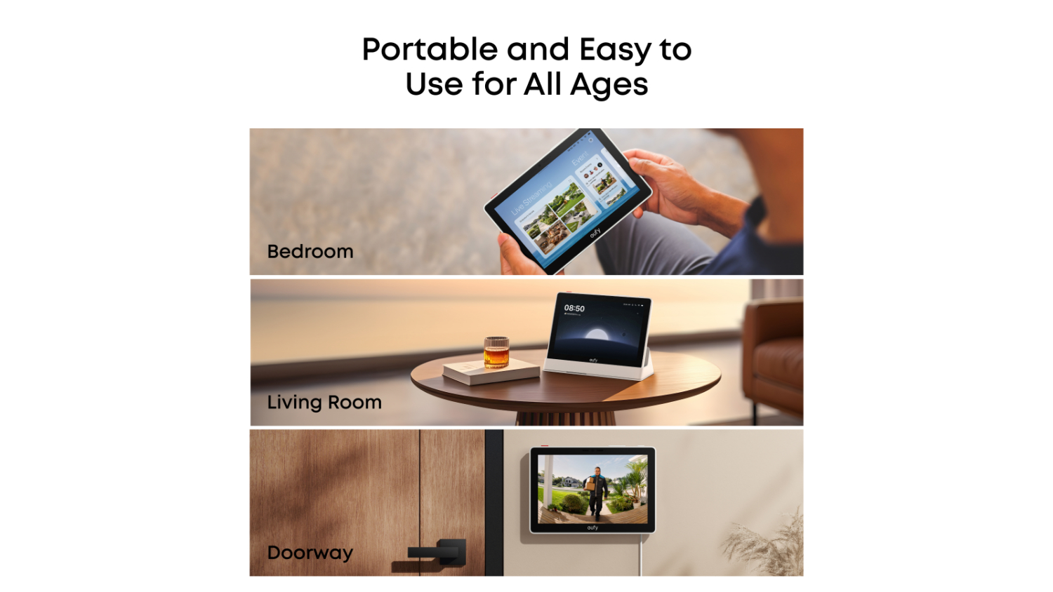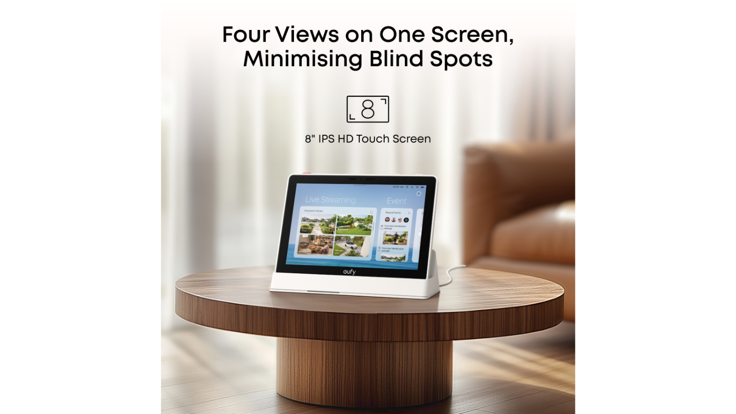 Gain seamless control and instant visibility over your security system with the Eufy E10 8" All-in-One Smart Display. This device lets you simultaneously view multiple security live feeds, receive alerts, check smart daily reports, trigger an emergency alert, arm/disarm your system, as well as playback clips with ease. You can even hold it, place it on a table, or mount it on a wall for simple monitoring.