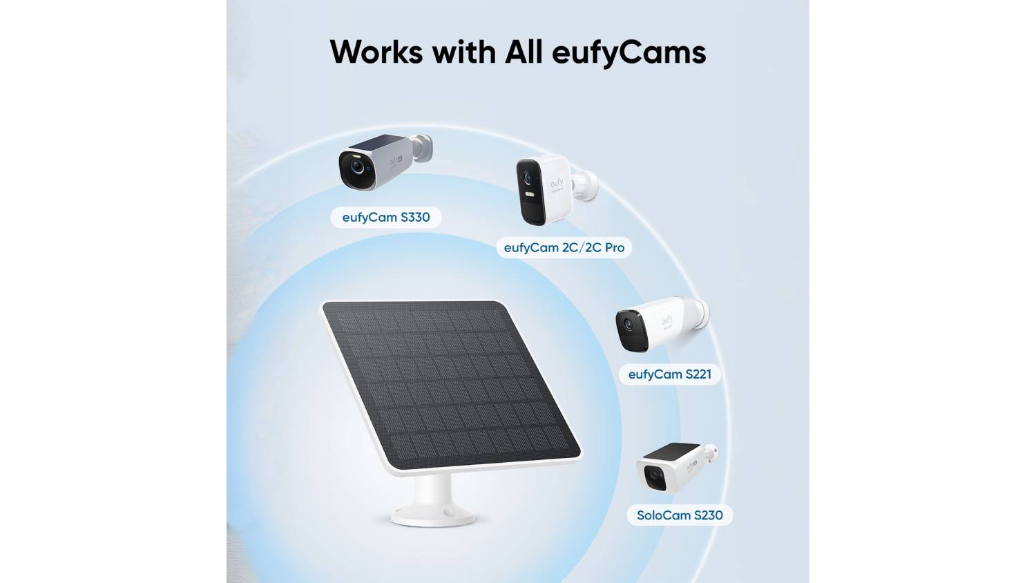 *Eufy Solar Panel 3W Charger only. Security cameras are not included and are sold separately.