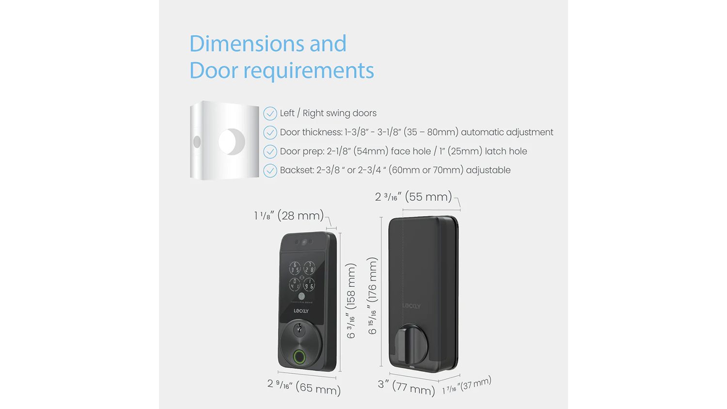 Get quick and secure access to your home with the Lockly Visage Zeno Deadbolt Smart Door Lock! Packed with an array of innovative features, this device offers multiple ways to unlock such as facial recognition, fingerprint, eKeys, eBadges, and scan-to-open. It also supports Wi-Fi and Bluetooth connectivity, letting you easily manage your door lock and access more features via your smartphone.
