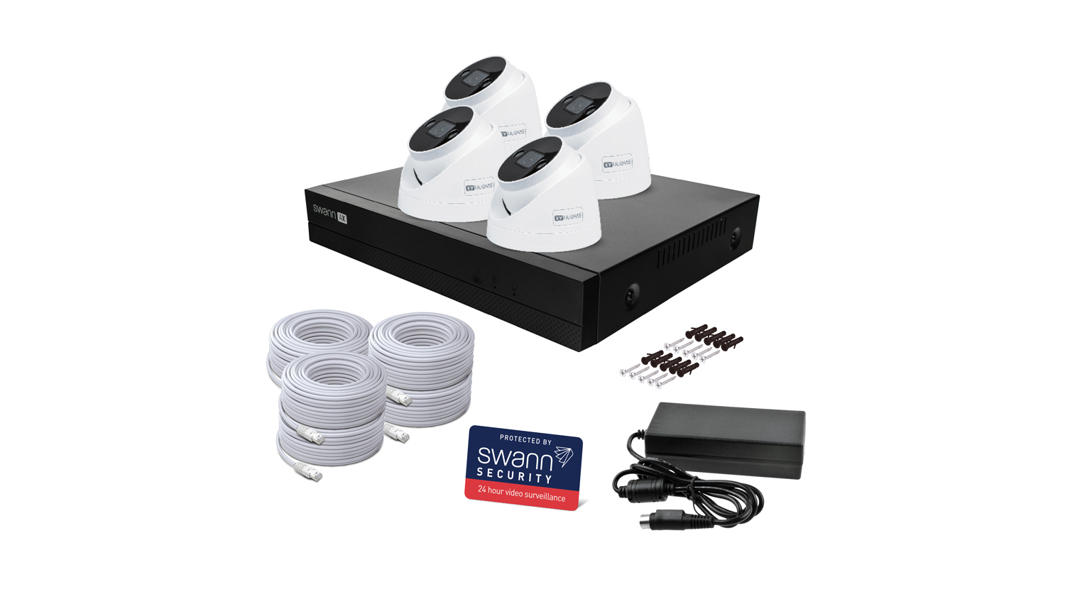 Keep an eye over your property day or night using the Swann AdvancedX NVR-8ADVANX 8 Channel 1TB NVR System with 4 x NHD-ADVANXD 4K Indoor/Outdoor Wired Security Dome Cameras. This ultimate bundle includes an 8-channel NVR with 1TB hard drive, four cameras with spotlights, and five Ethernet cables, making it the perfect security system for your home or business. It also boasts convenient features such as 4K Ultra HD resolution, Colour Night Vision, Audio Recording, Motion Detection, and more. Plus, this unit supports the Swann Security app, so you can enjoy additional remote access and control functions.