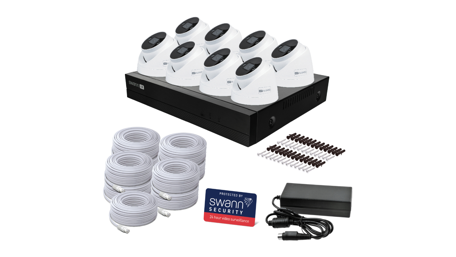 Have a clear view of your property day or night using the Swann AdvancedX NVR-8ADVANX 8 Channel 1TB NVR System with 8 4K Indoor/Outdoor Wired Security Spotlight Dome Camera. This ultimate bundle includes an 8-channel NVR with 1TB hard drive, eight NHD-ADVANCXB Cameras with Spotlights, and nine Ethernet Cables, making it the perfect security system for your homes or businesses. It also boasts convenient features such as 4K Ultra HD resolution, Night2Day™ colour night vision, Motion Detection, Sound Detection, Intrusion Zone, Smart Entry and Exit Alerts, and more. Plus, this unit supports the Swann Security app, so you can enjoy additional remote access and control functions.