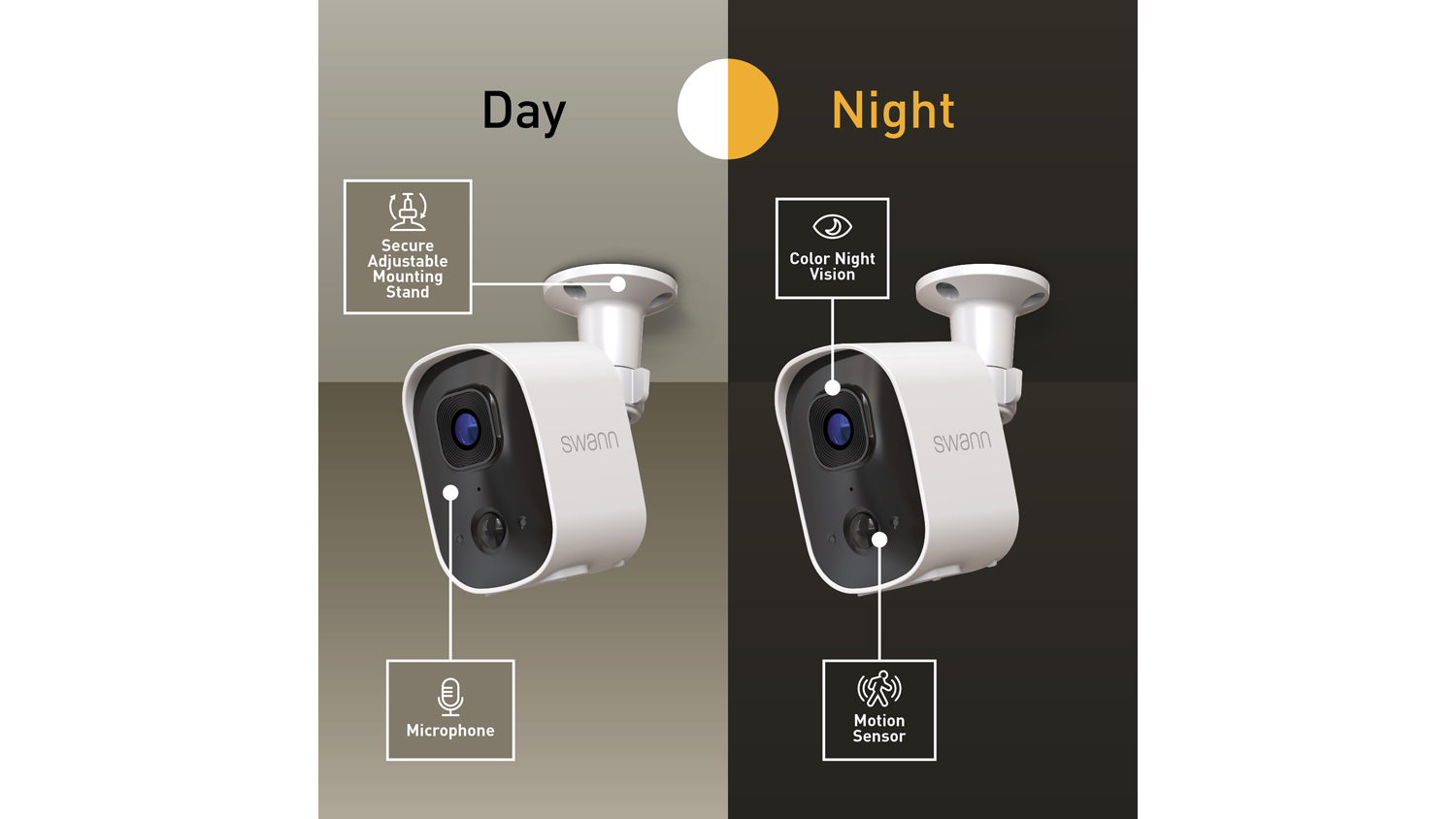 Monitor your property and keep your loved ones safe with the Swann EVO 2K Indoor/Outdoor Wireless Security Camera. Featuring 2K Quad HD with powerful night vision, this surveillance solution lets you capture every detail day and night. It is also backed up with True Detect™ heat and motion-sensing technology, 2-Way Audio, smart alerts, and a built-in siren to add more layers to your security. In addition, this unit comes with a 32GB microSD card, allowing you to store clips locally and access them via the Swan Security app.