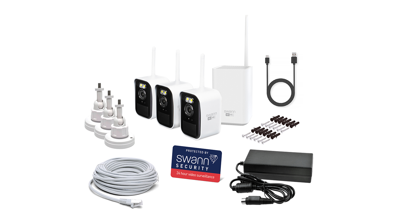 - Cover Every Corner: Experience next-level home surveillance using the Swann MaxRanger Mini 4K Wireless Security System. Packed with a base station and three cameras, this bundle is a reliable solution for monitoring your large indoor or outdoor spaces. It also employs Wi-Fi HaLow technology that cuts through brick walls, cement, ceilings and trees.