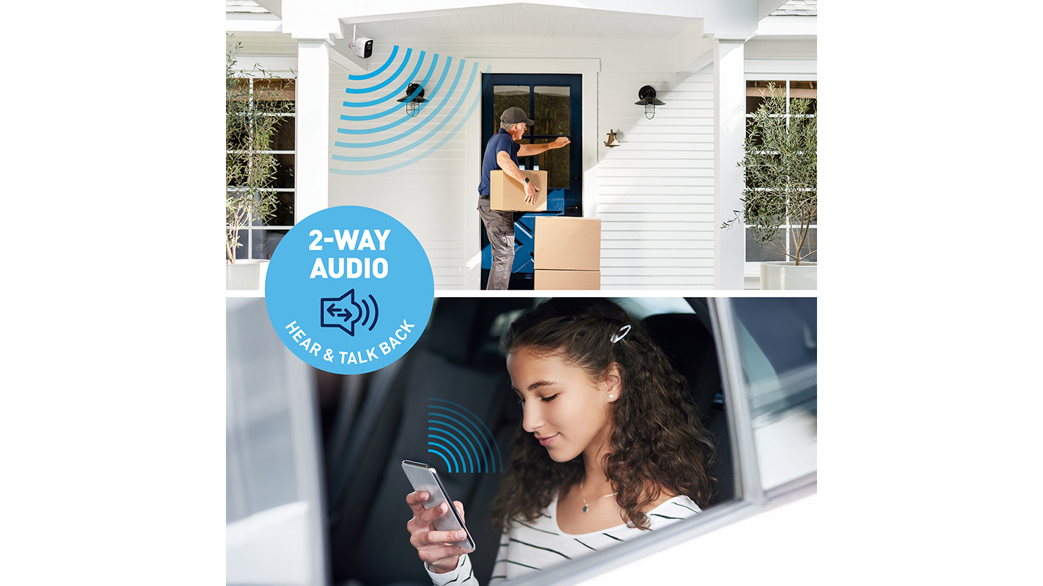 - Talk and Listen: The integrated 2-Way Audio feature enables you to both hear and talk to the person in front of the camera.