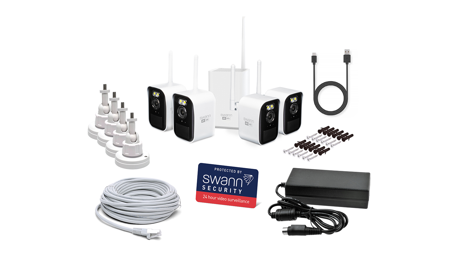 - Cover Every Corner: Experience next-level home surveillance using the Swann MaxRanger Mini 4K Wireless Security System. Packed with a base station and four cameras, this bundle is a reliable solution for monitoring your large indoor or outdoor spaces. It also employs Wi-Fi HaLow technology that cuts through brick walls, cement, ceilings and trees.
