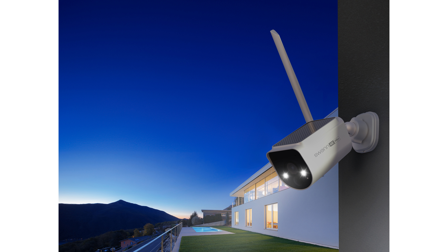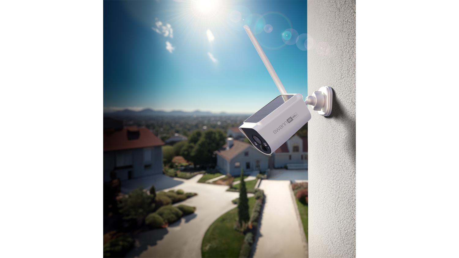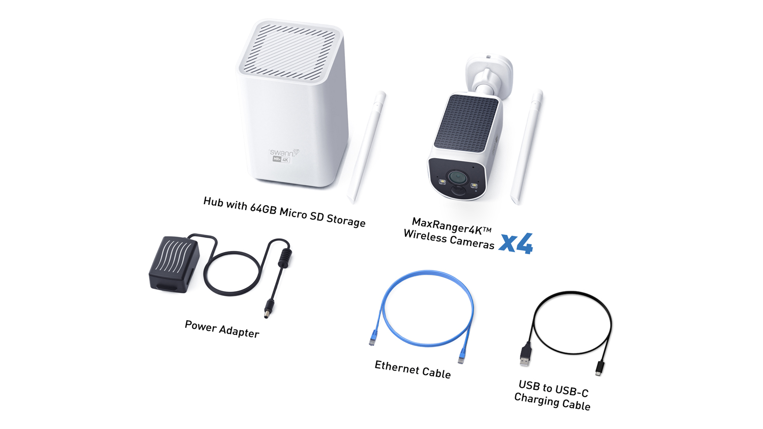Swann MaxRanger4K V2 Outdoor Wireless Security Camera with Built-in Solar Panels - 4 Pack (White, Base Station, 64GB MicroSD)