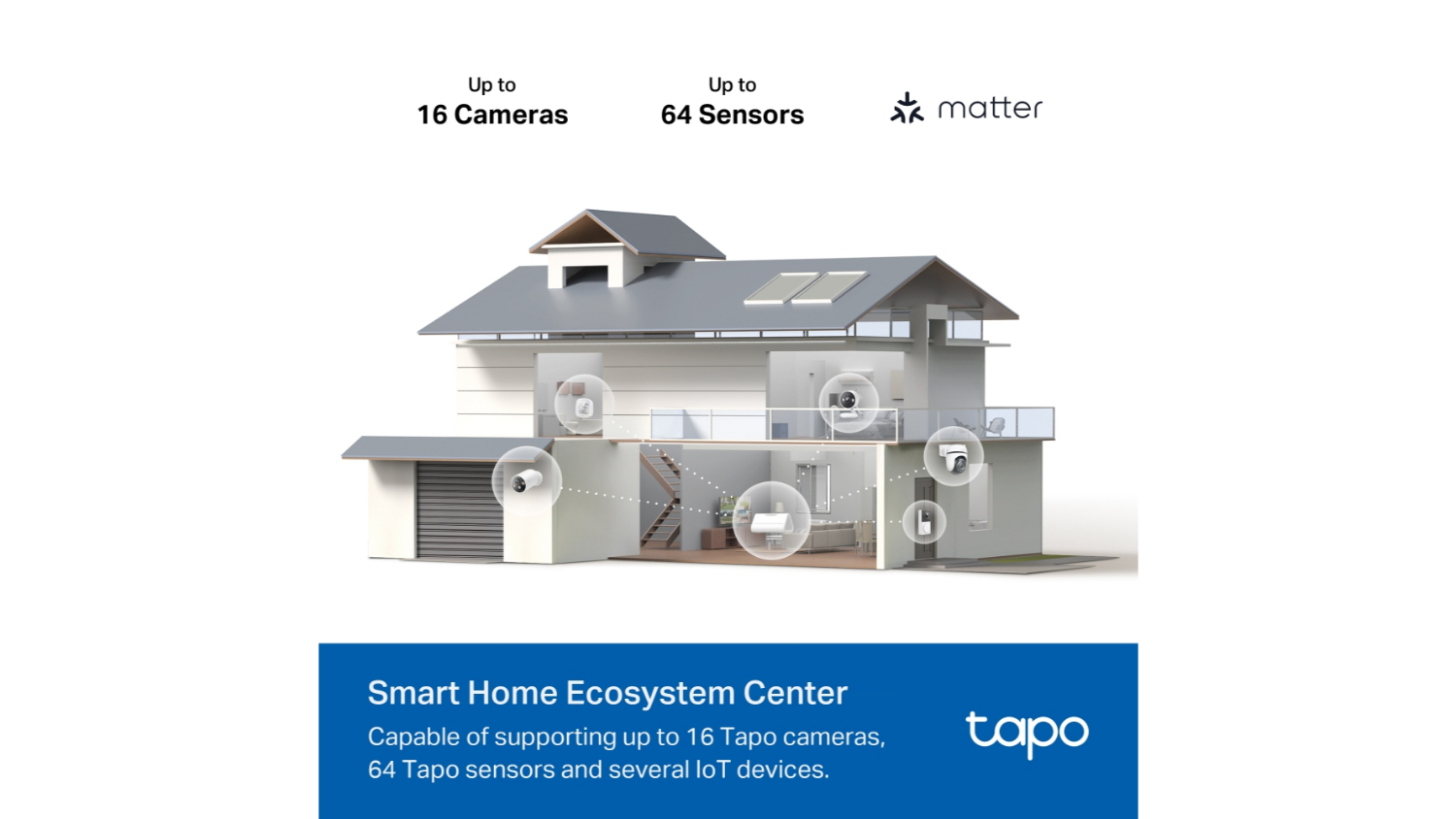 Seamlessly manage your entire security system with the TP-Link Tapo H500 Smart HomeBase. Designed for modern living, this device reliably connects up to 16 Tapo cameras and 64 Tapo Sub-G sensors for a more unified network. It also boasts 16GB of storage to readily keep your captured footage. Plus, it packs more handy features like 110dB alarm, HDMI ports, and Tapo app support.