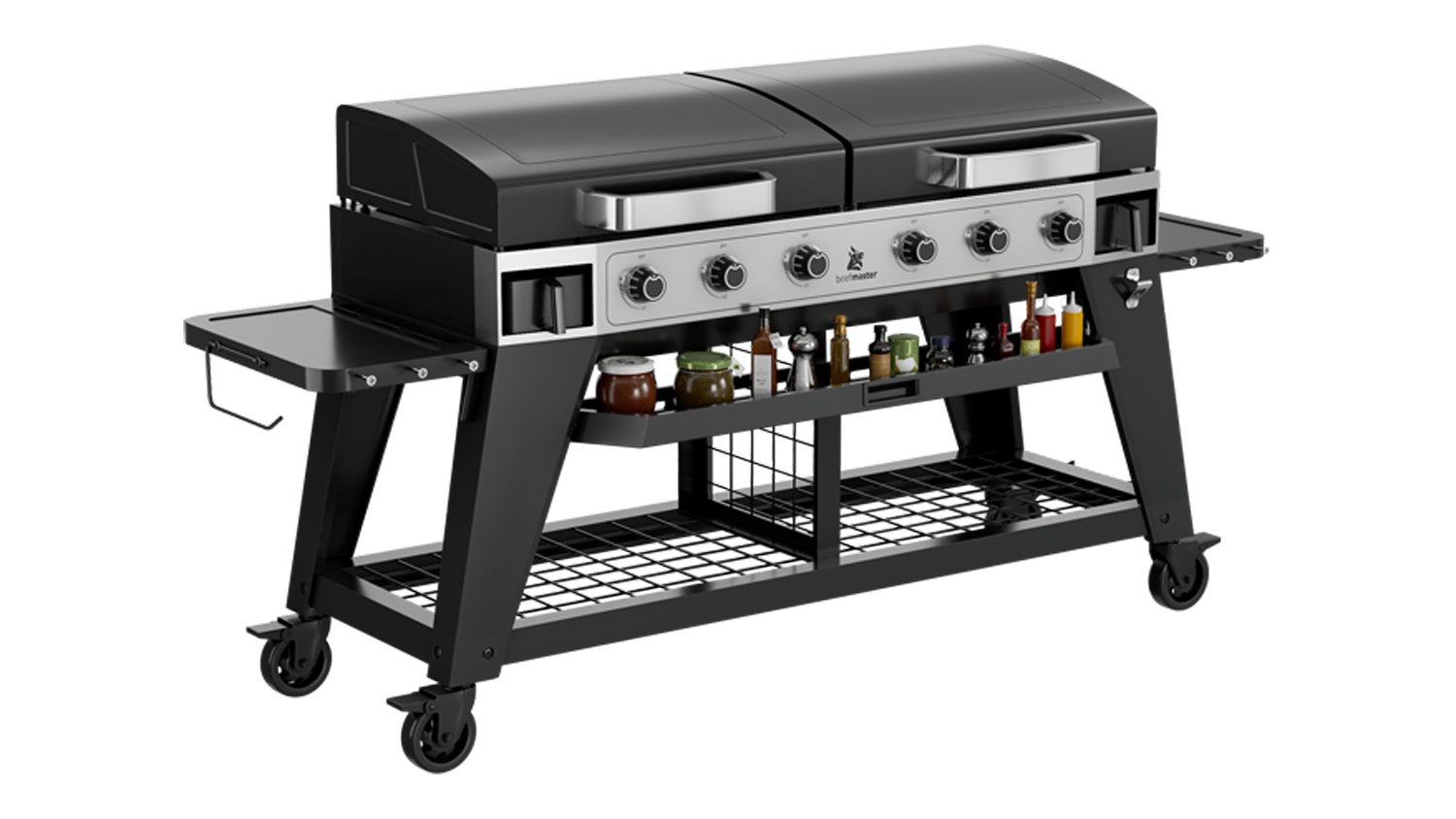 Grill, fry, and serve with ease using the Beefmaster 6 Burner Flat Top Burner BBQ. Enjoy flawless, even-heat grilling with no flare-ups. The cleverly engineered hood locks in flavour, while the Ultraheat steel hotplate gives you a versatile surface for grilling, frying, or making breakfast. Plus, a front-panel grease catcher and condiment rack make cleanup and prep effortless.