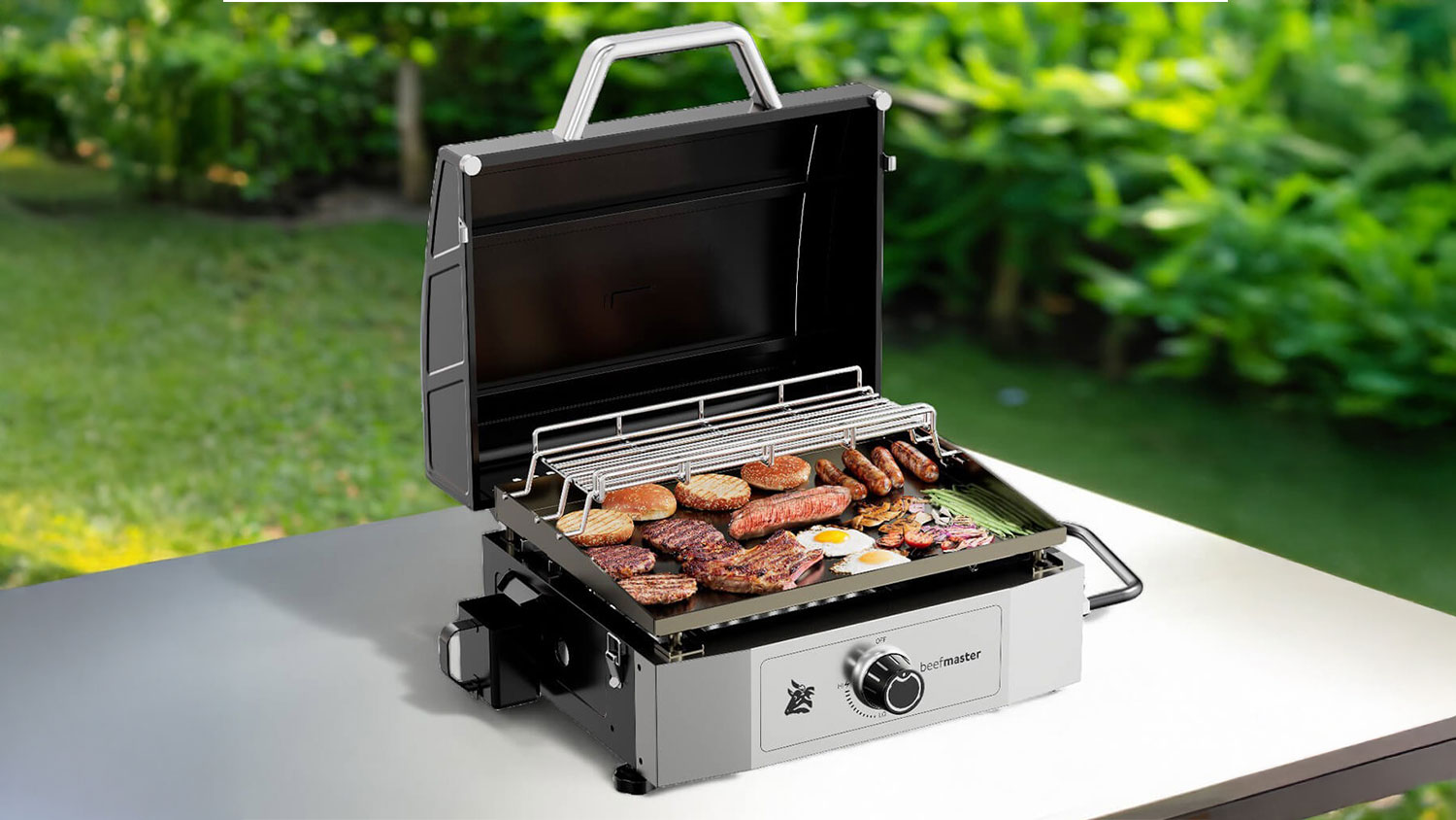 Make outdoor cooking a breeze with the Beefmaster Portable 1 Burner BBQ. It features a flat top griddle and an efficient Ultraheat steel hotplate, giving you the flexibility to grill, sear, and fry with confidence. Plus, its sturdy hood, built-in drain tray, and flame failure technology ensure safe, controlled cooking, making it perfect for camping, picnics, or backyard hangouts.