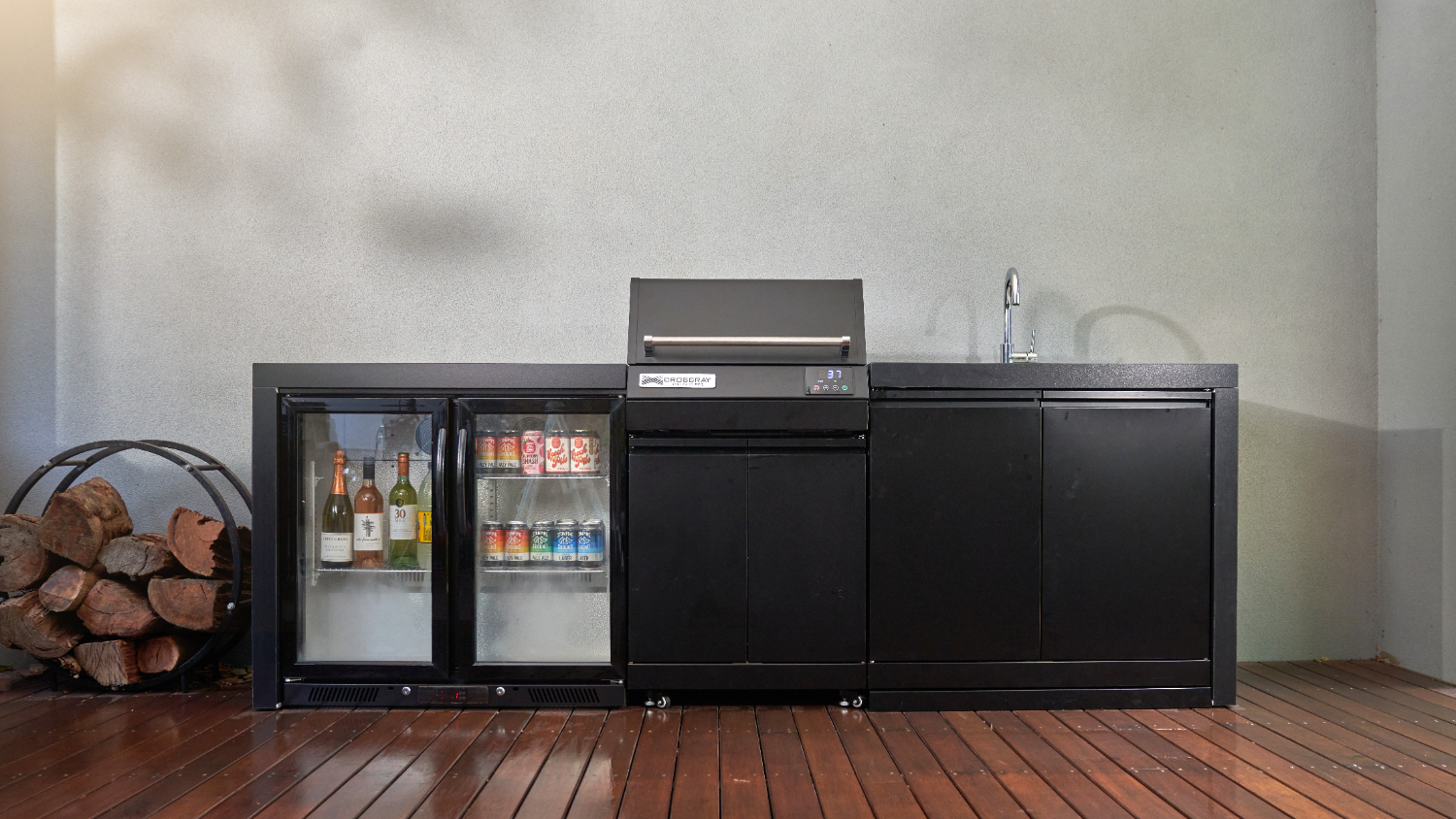 **Please note: Price is for one Crossray Electric BBQ Outdoor Kitchen with Double Fridge and Sink only. Tap, accessories and other items shown are not included.