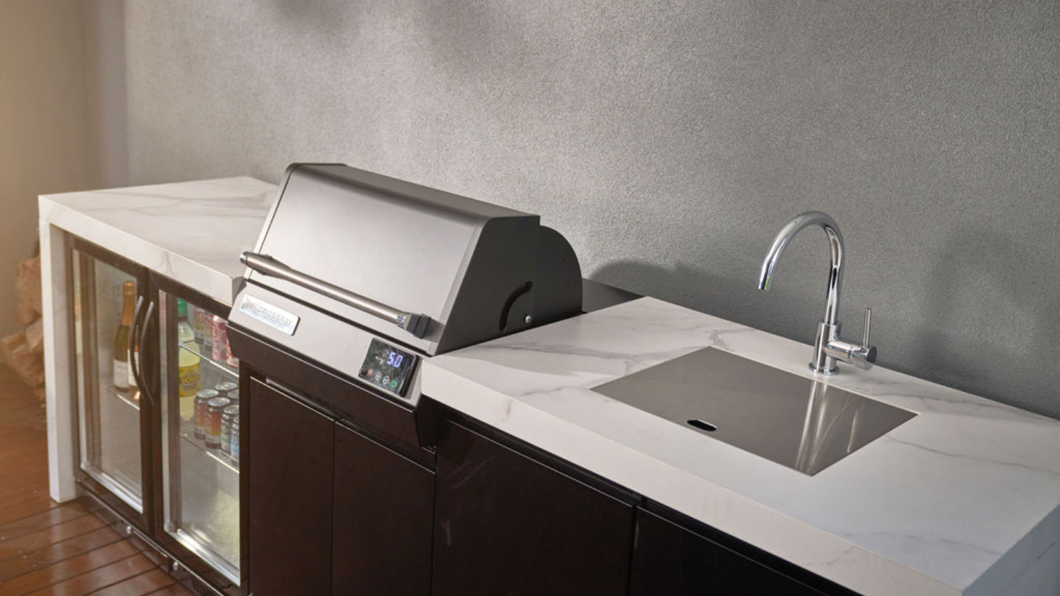 Transform your patio or balcony into a complete outdoor culinary hub with the Crossray Electric BBQ Outdoor Kitchen with Double Fridge and Sink! Boasting a powerful eXtreme electric BBQ, this unit lets you grill, roast, and sear flame-free. It also incorporates weatherproof sintered stone benchtops and corrosion-resistant cabinets, delivering a high-end, maintenance-free setup. Plus, it comes with an integrated double-door fridge and sink, providing everything you need to cook and prepare, all while entertaining guests at your party!
