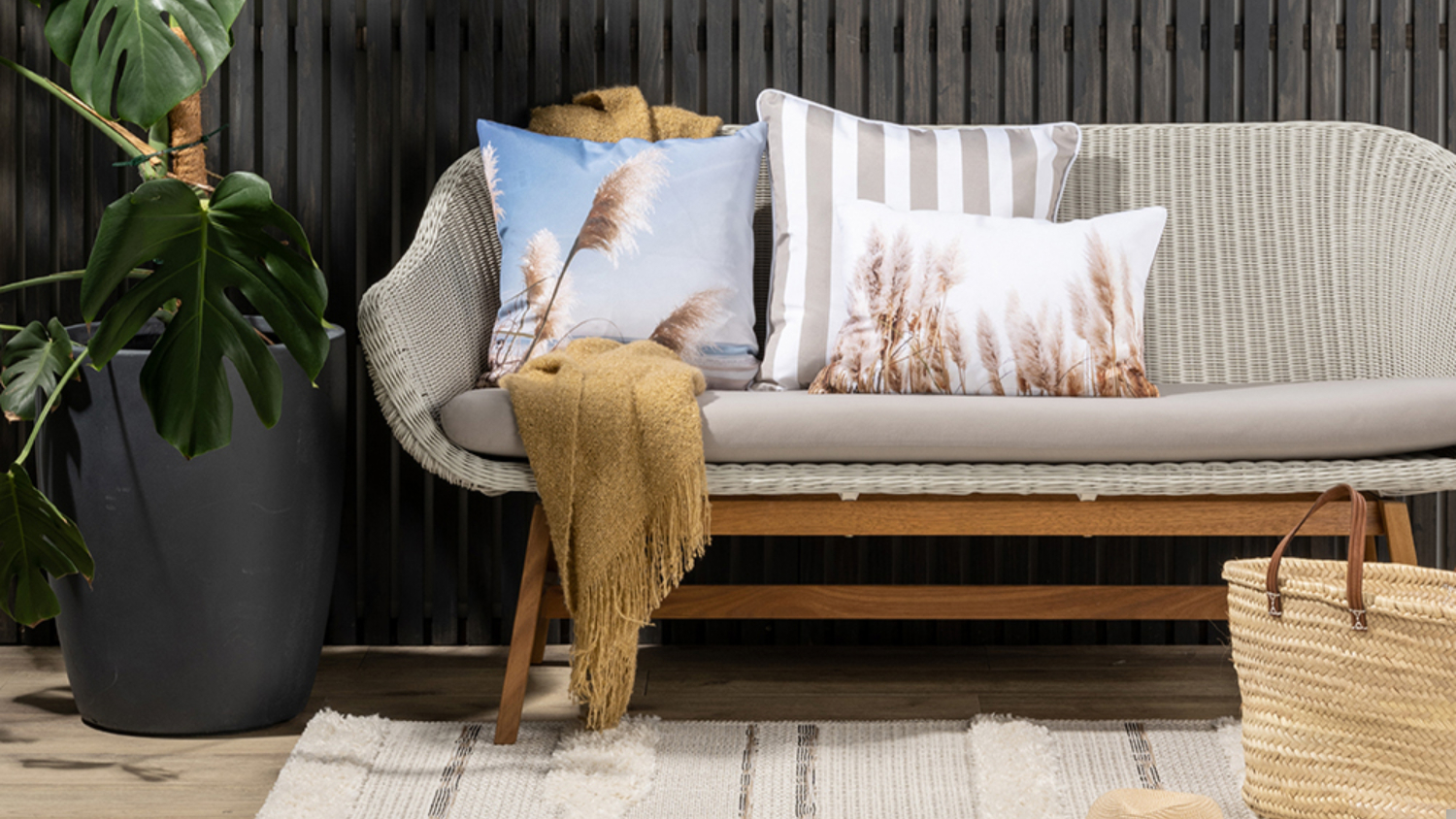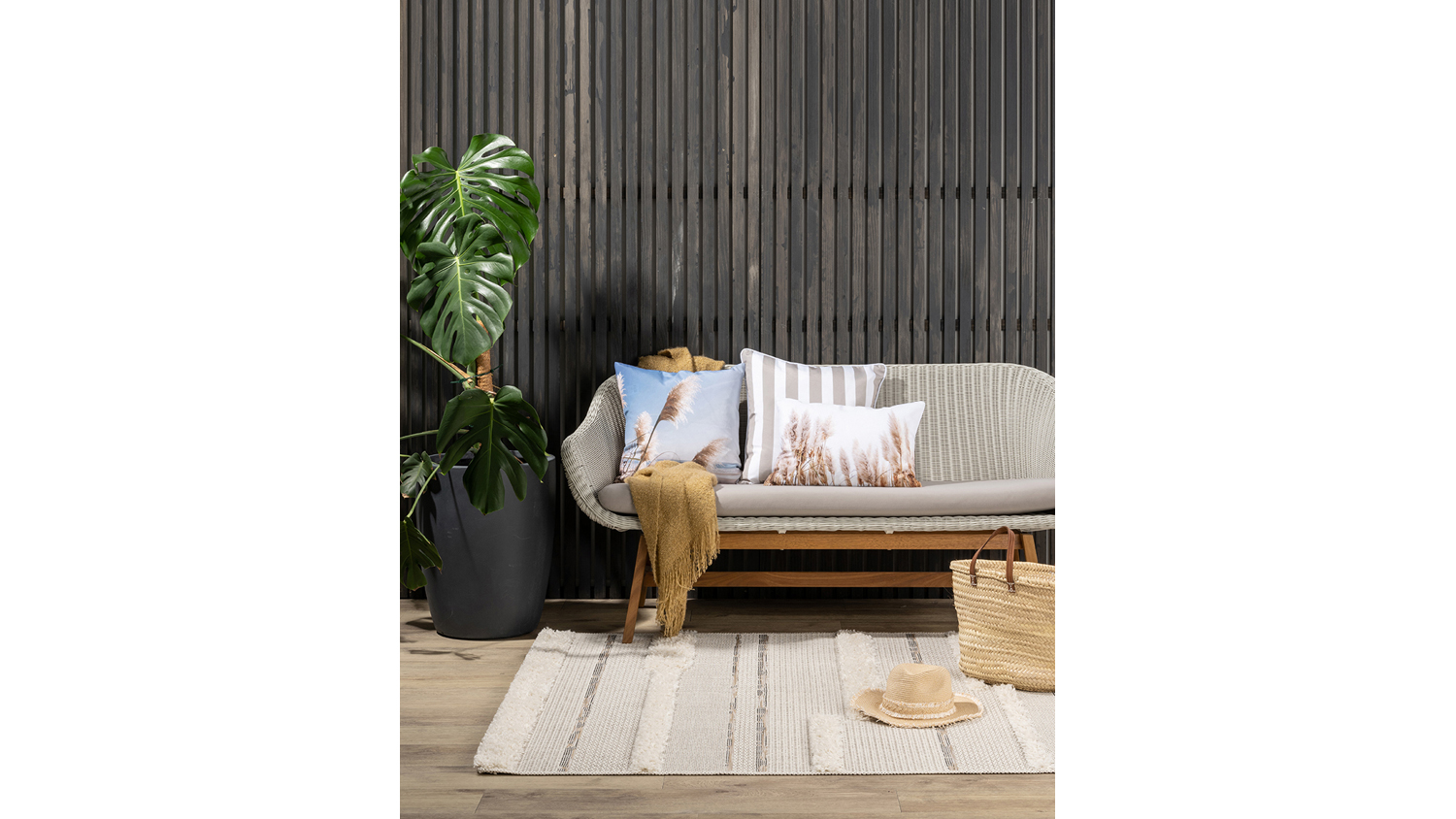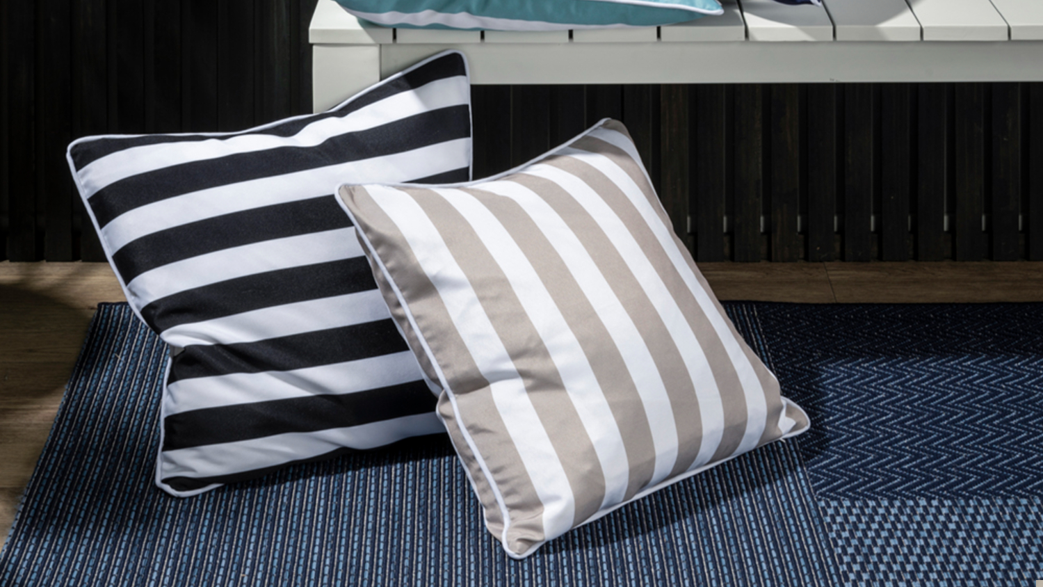 **Please note: The price stated is for one Branch Stripe Outdoor Cushion only. Matching cushions, accessories, and other items shown are not included.