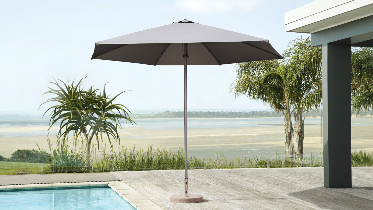 Enjoy sunny days without the hassle with the Epsilon 2.7M Grey Outdoor Umbrella! This centre-poled umbrella features a durable powder-coated steel frame and a UV50+ polyester canopy, offering both style and sun protection. The lowered handle lets you effortlessly push up to open or pull down to close, making it a great fit for any patio table setup.