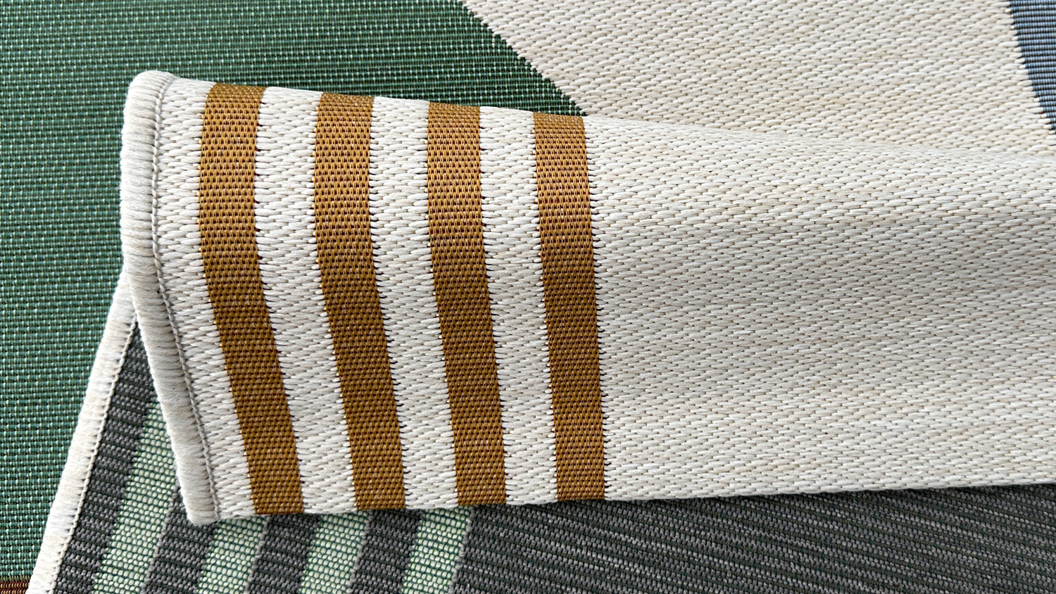 **Care instructions: Rinse thoroughly with a garden hose, and allow to dry completely before vacuuming. Vacuum or shake as necessary. Clean spills immediately by blotting with absorbent paper or a clean cloth. Do not pull loose ends; either trim with scissors. When the outdoor entertaining season is over, we recommend storing your dry, rolled rug in a covered area to avoid fading. Do not use harsh chemicals as they may damage the rug.