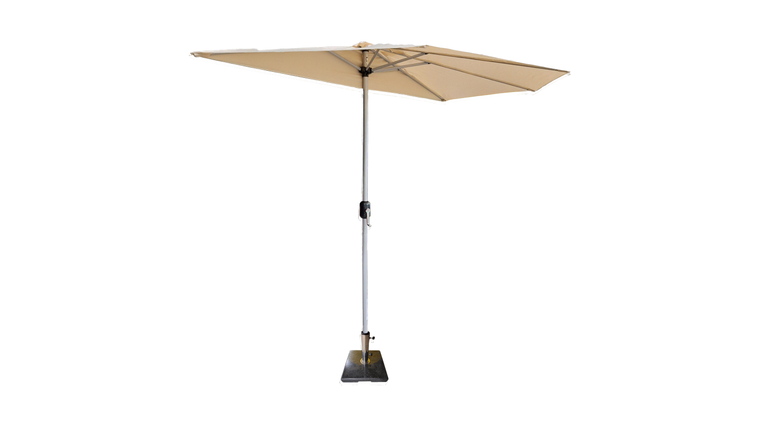 Bring comfort and shade to your balcony with the Izar 2.7M Grey Outdoor Umbrella! This half-centre-poled umbrella fits perfectly against walls, making it ideal for compact areas. It offers UV50+ protection under its stylish polyester canopy and a sturdy powder-coated steel frame. Plus, it comes with an easy crank mechanism for effortless operation and a protective cover for storage.