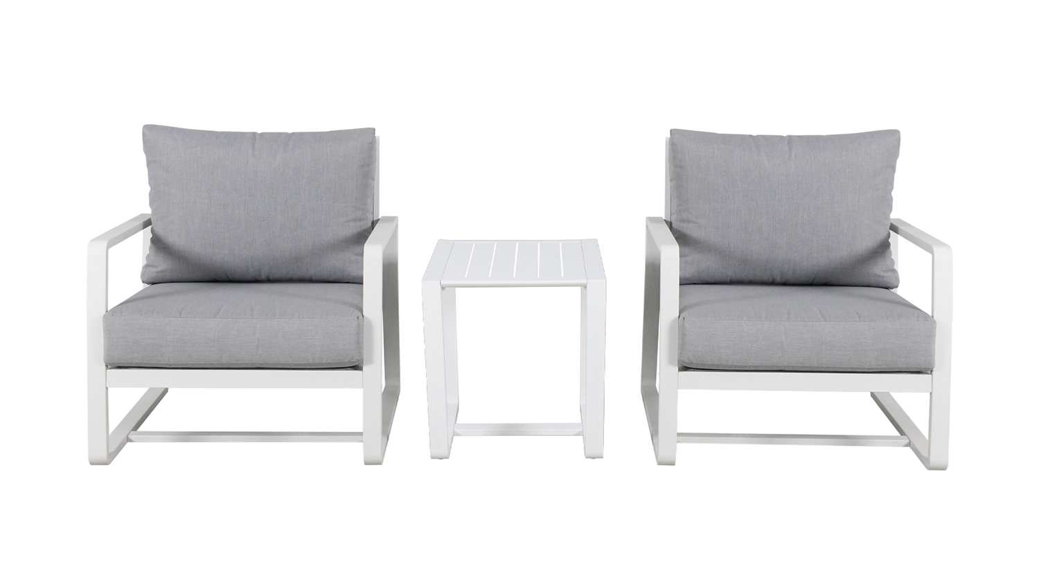 Set up an ideal outdoor haven for relaxation with the Jovi 3 Piece Patio Setting! This furniture ensemble features two armchairs and one side table, making it a wonderful addition to your small balcony, patio, or poolside. It is also crafted with a durable aluminium frame and plush cushions to keep you comfortable as you unwind.