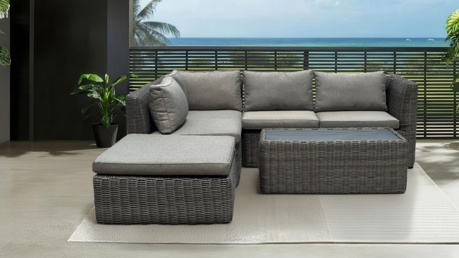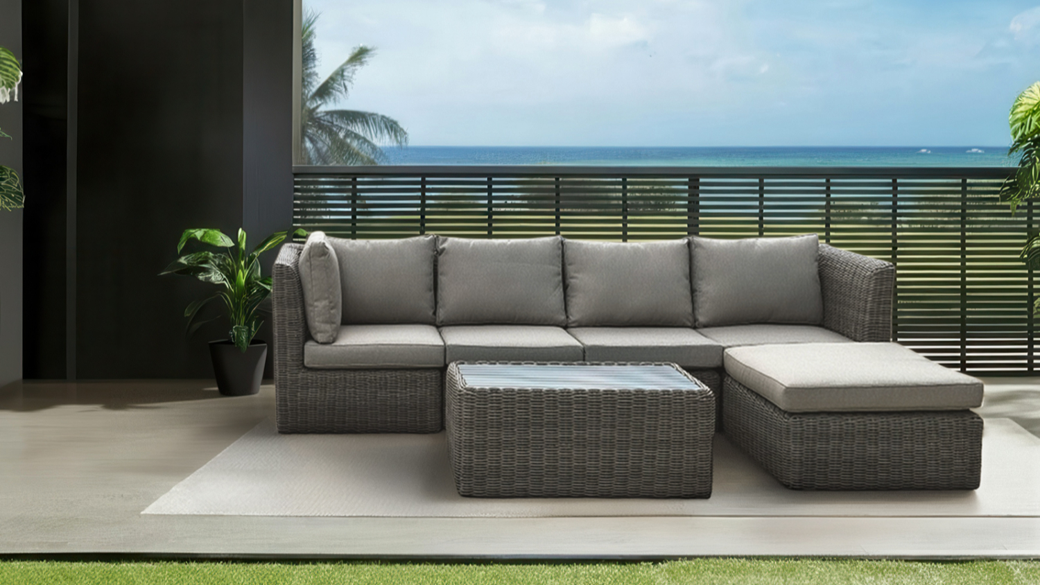 Transform your patio into a modern, cosy retreat with the Hibiscus Outdoor Corner Lounge Suite. Perfectly combining comfort and contemporary wicker style, this furniture set lets you set up an inviting space for relaxing and entertaining. It comes with two corner sofas, two middle sofas, and an ottoman to provide ample seating. Plus, it has a stylish coffee table for keeping your essentials within easy reach.